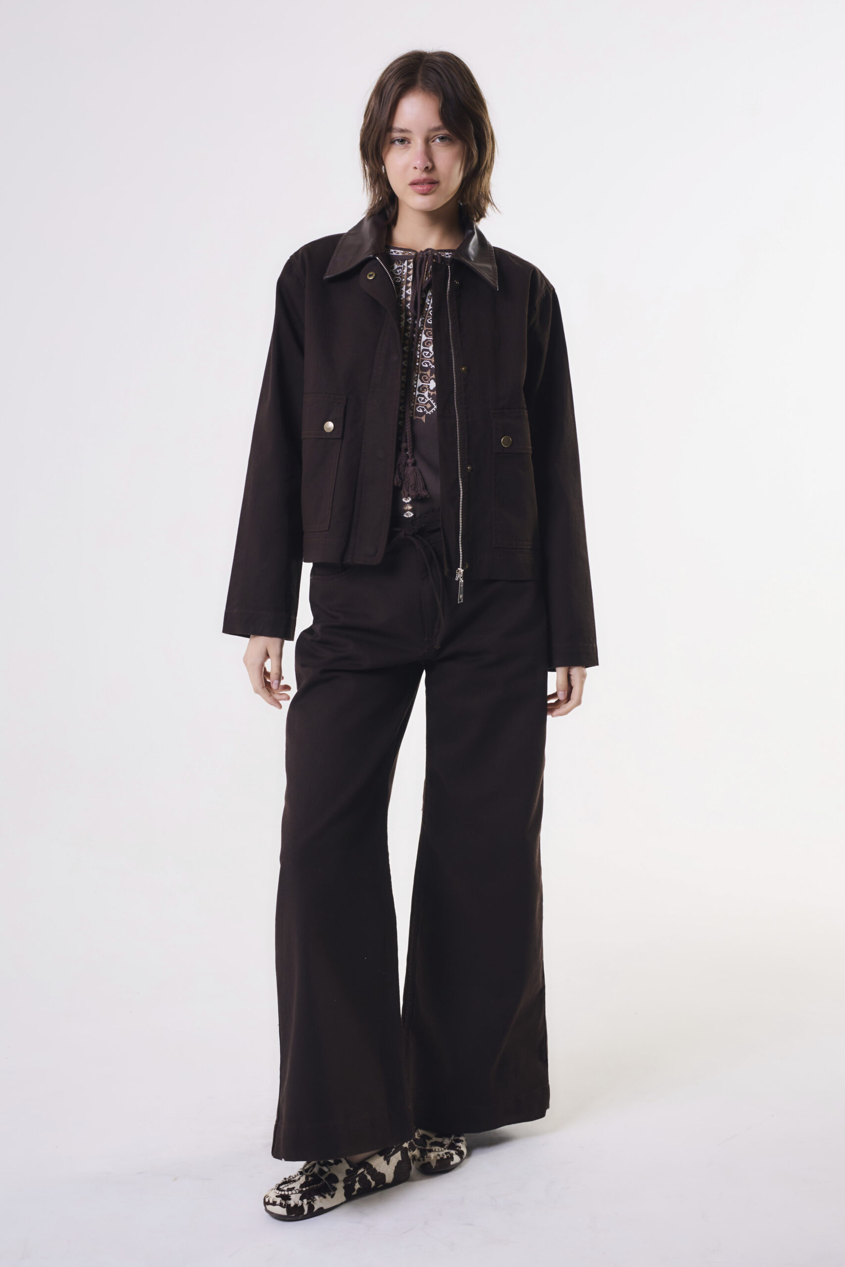 Camisaco denim con bolsillos plaqué con tapa.
