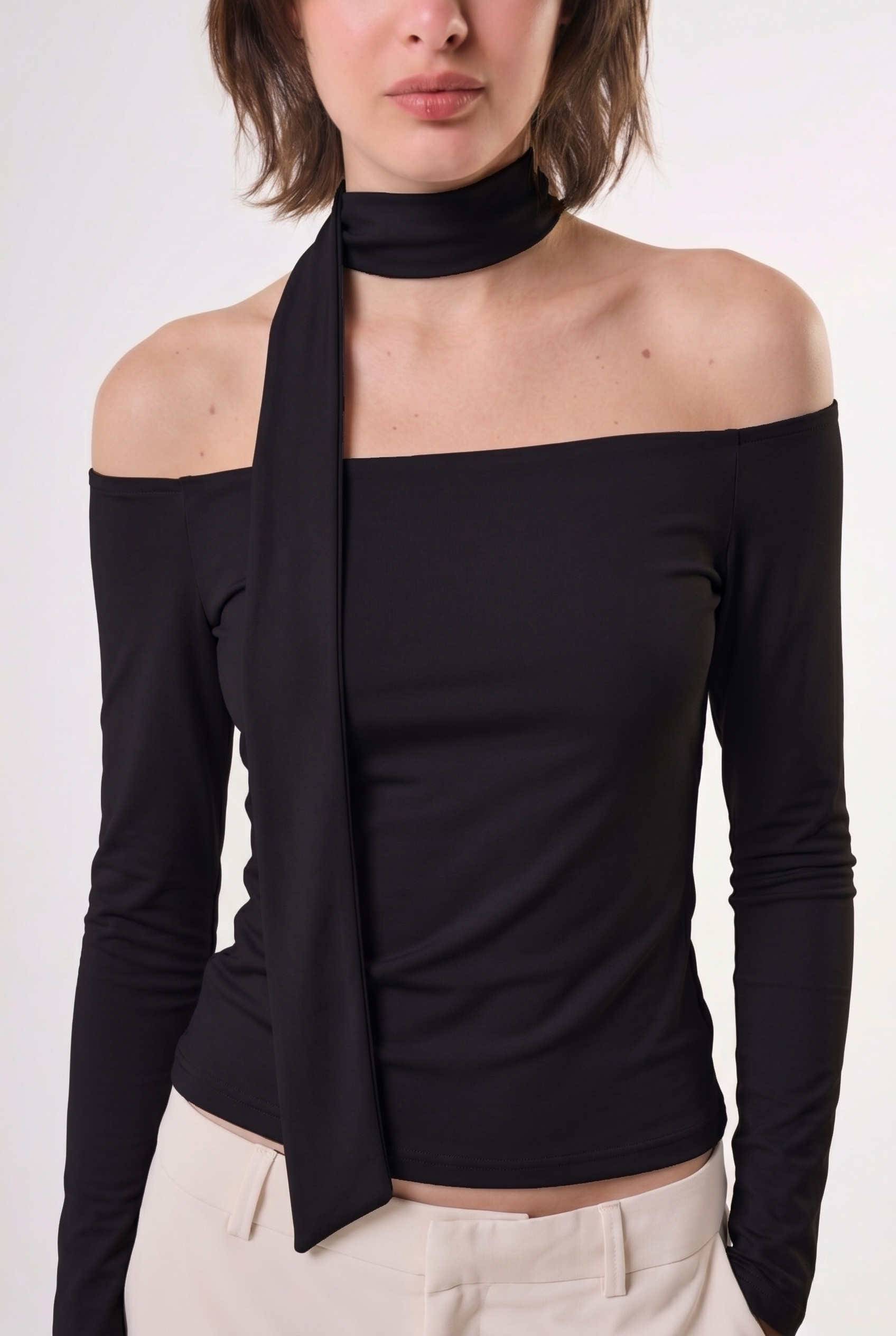 New$ 10.000,00Remera con hombros caídos, mangas largas y lazo en el cuello.