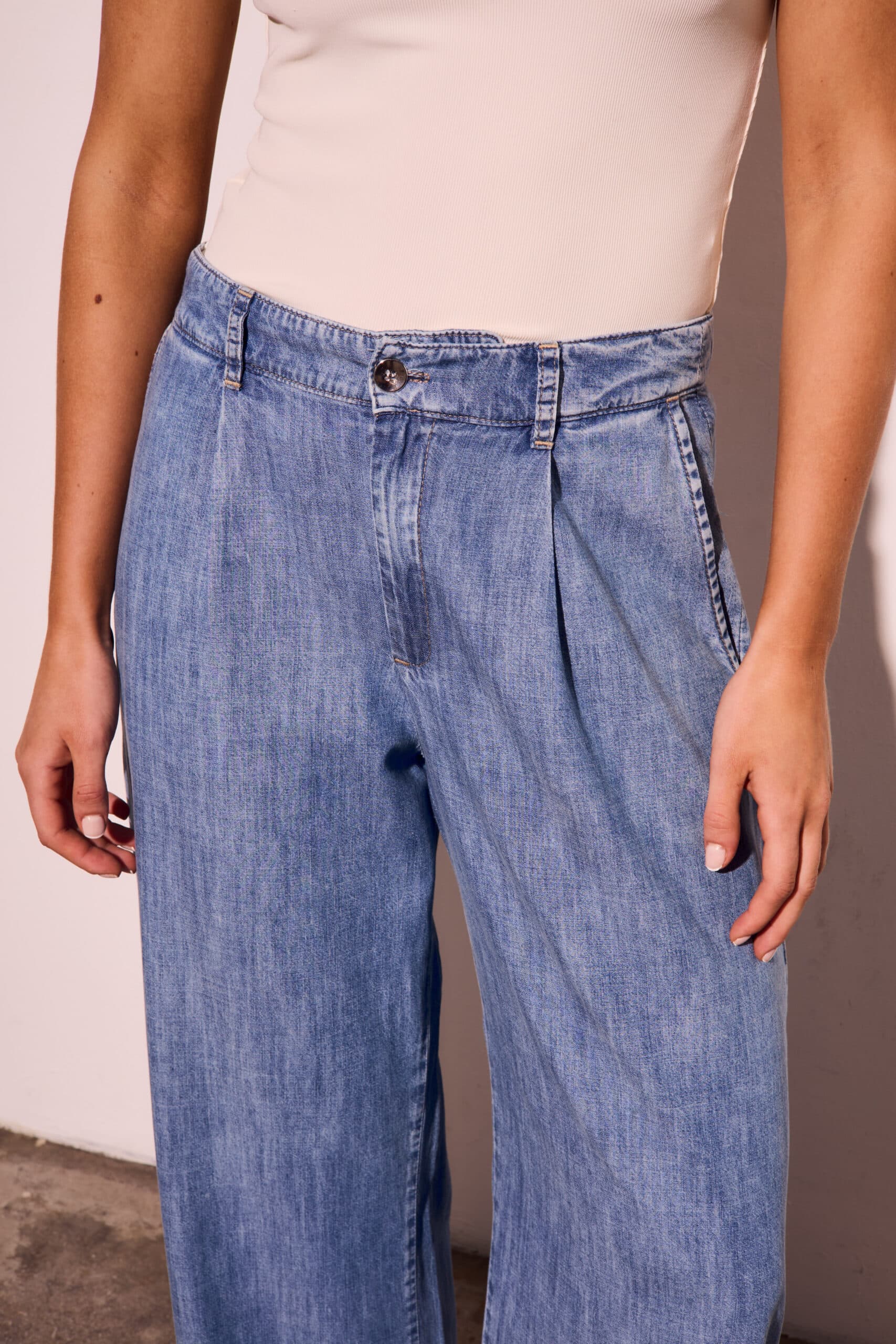 $ 28.000,00Jean rígido estilo sastrero con pinzas y bolsillos en el delantero.