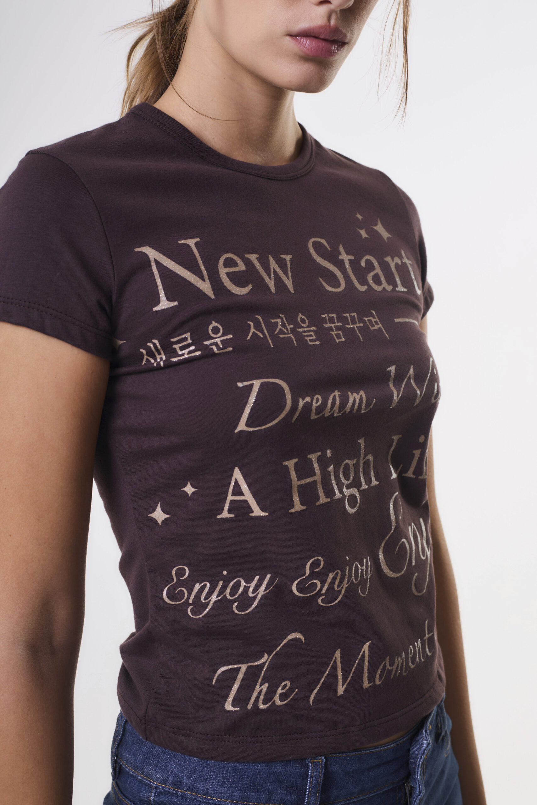 New$ 14.000,00Remera de calce regular con cuello rib al tono, con estampa y hotfix