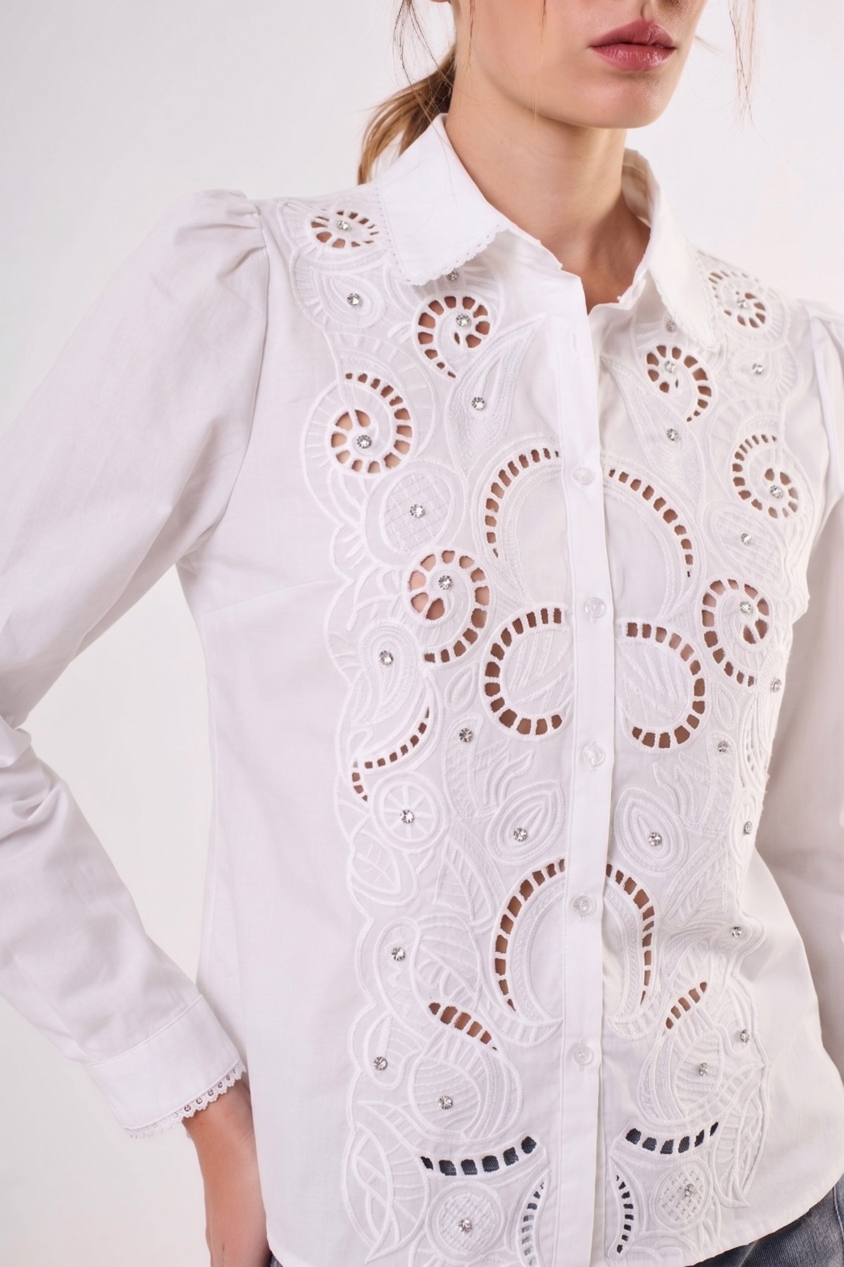 - 20 % Off$ 29.000,00El precio original era: $ 29.000,00.$ 23.200,00El precio actual es: $ 23.200,00.Camisa de mujer importada de calce holgado con largo modular hasta la segunda cadera. Lleva mangas raglán abullonadas con puños con abertura y botón. La prenda se caracteriza por tener recortes en la zona superior de la prenda, los cuales llevan bordado con calados. La terminación del recorte lleva entredos […]