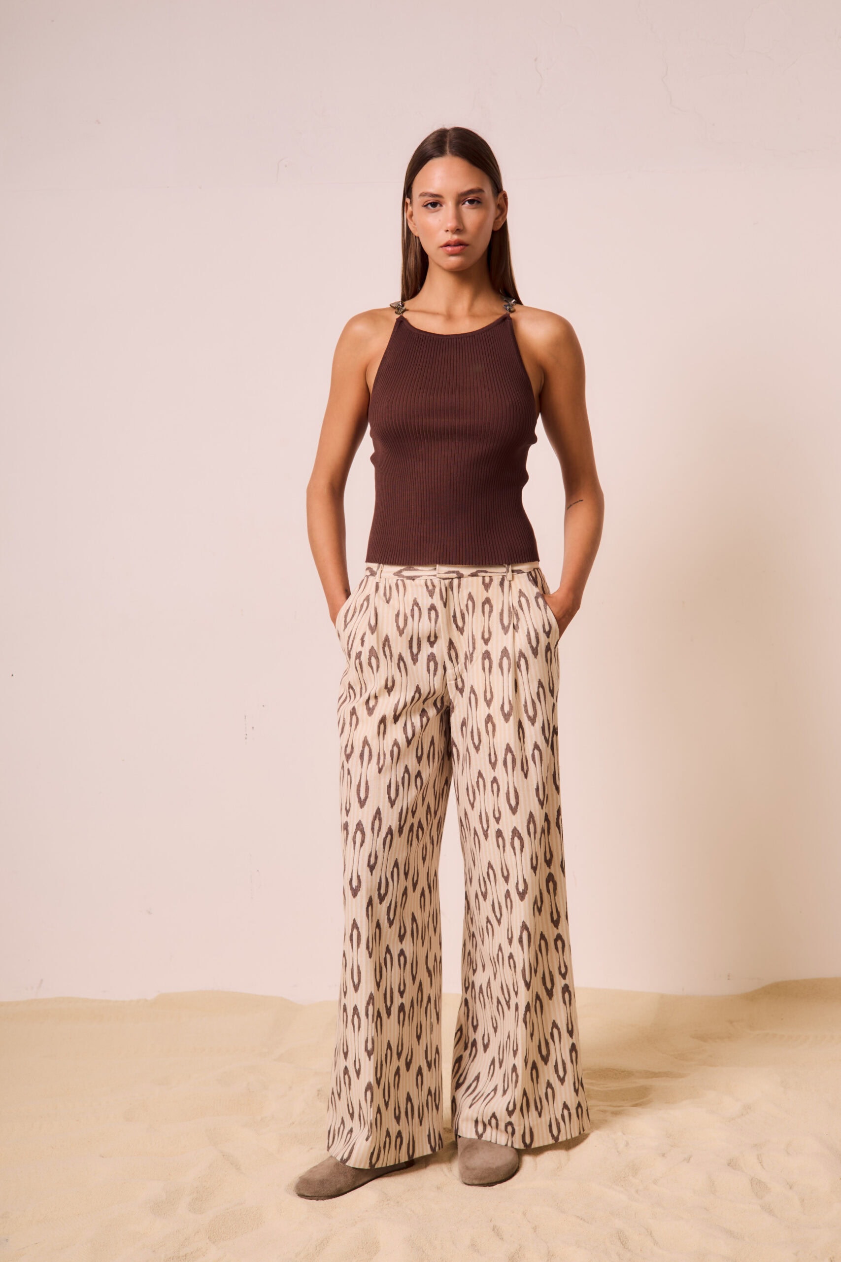 $ 43.000,00Pantalón tiro alto recto. Lleva cintura con presillas, tablas en delantero, pinzas en espalda, bolsillos laterales, detalle de tapa en delantero y ribete en espalda. Acceso mediante gancho pantalonero, botón translúcido y cierre. Confeccionado en lino 100% sastrero. Composición: 100% Lino Hace conjunto con el Chaleco Art. 2627 La modelo […]