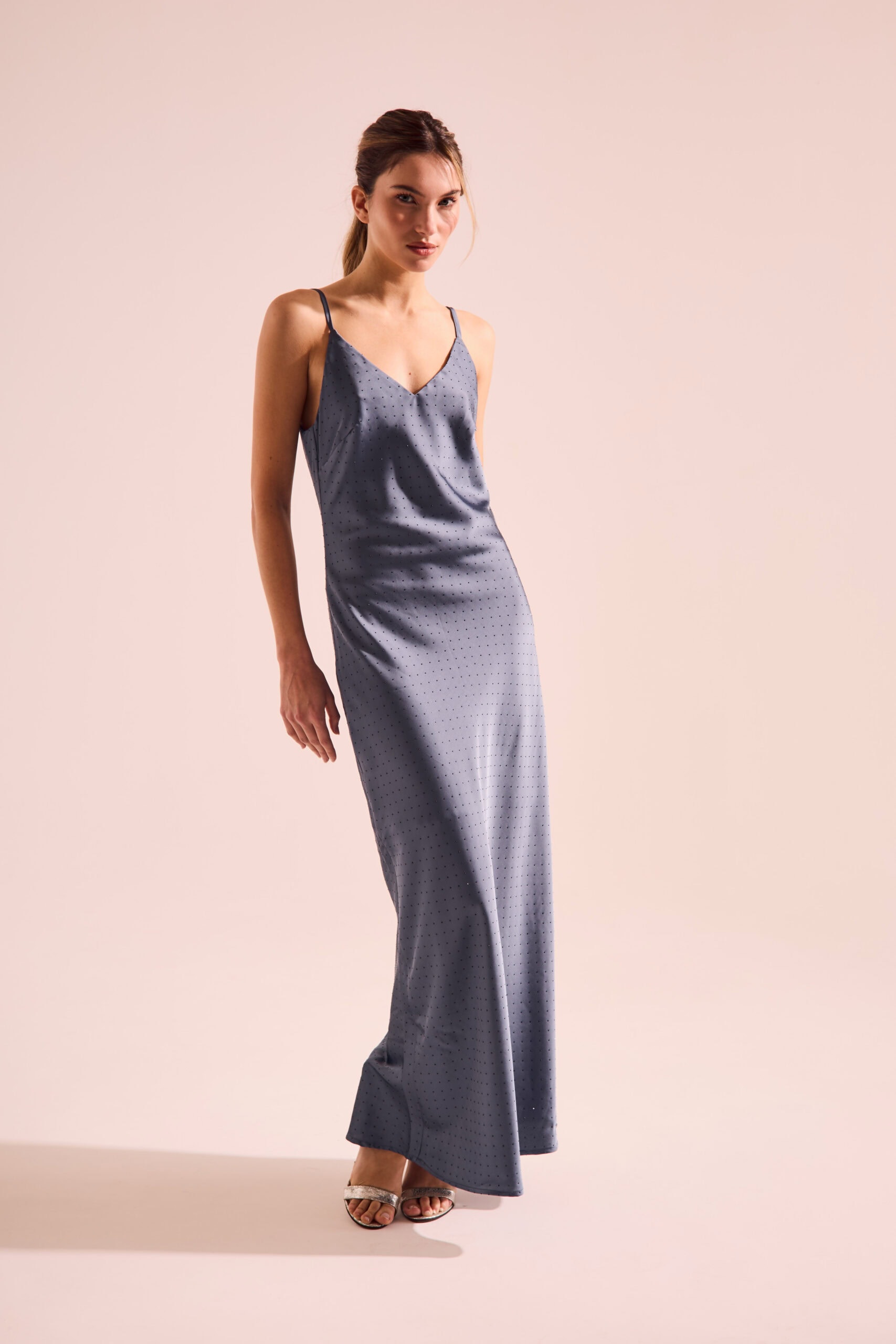 $ 35.000,00Vestido de largo modular maxi de calce recto. Tiene breteles regulables y escote en V. Detalle de lluvia de hotfix facetado 1mm al tono que recorre toda la prenda. Confeccionado en satén. Composición: 95% Poliéster 5% Spandex La modelo está usando talle S color Azul Altura de la modelo: 175 […]