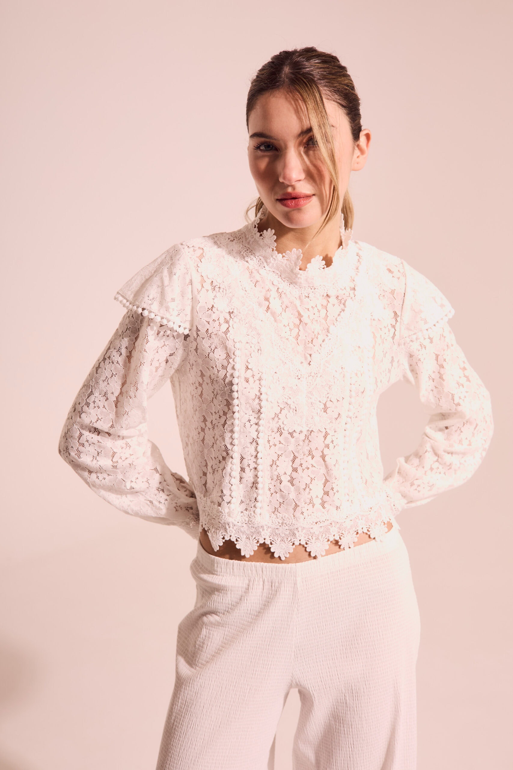 - 15 % Off $ 29.000,00El precio original era: $ 29.000,00.$ 24.650,00El precio actual es: $ 24.650,00.Blusa de calce recto manga larga. Tiene mangas abullonadas con apertura, botón y broderie y zócalo con puntilla. Lleva cuello subido con broderie y el delantero lleva puntillas varias; colocadas en vertical, diagonal y en el ruedo. Largo modular debajo de cintura. Acceso mediante gota en espalda con botones camiseros […]