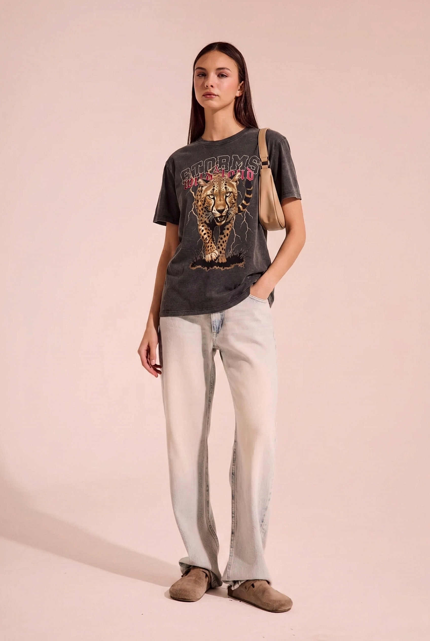 $ 10.000,00Remera con lavado acid wash en prenda y diseño central de hotfix facetado 2mm.