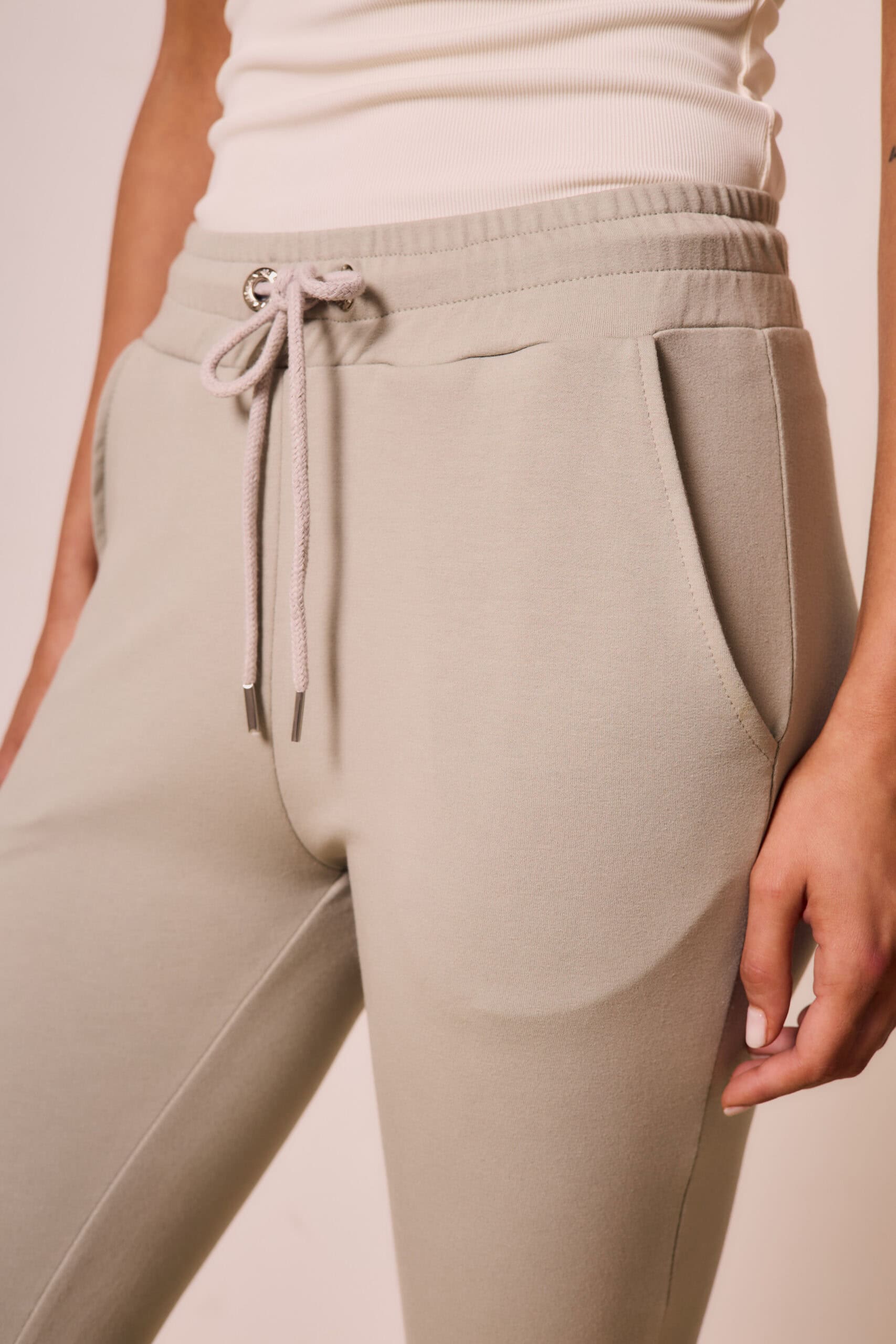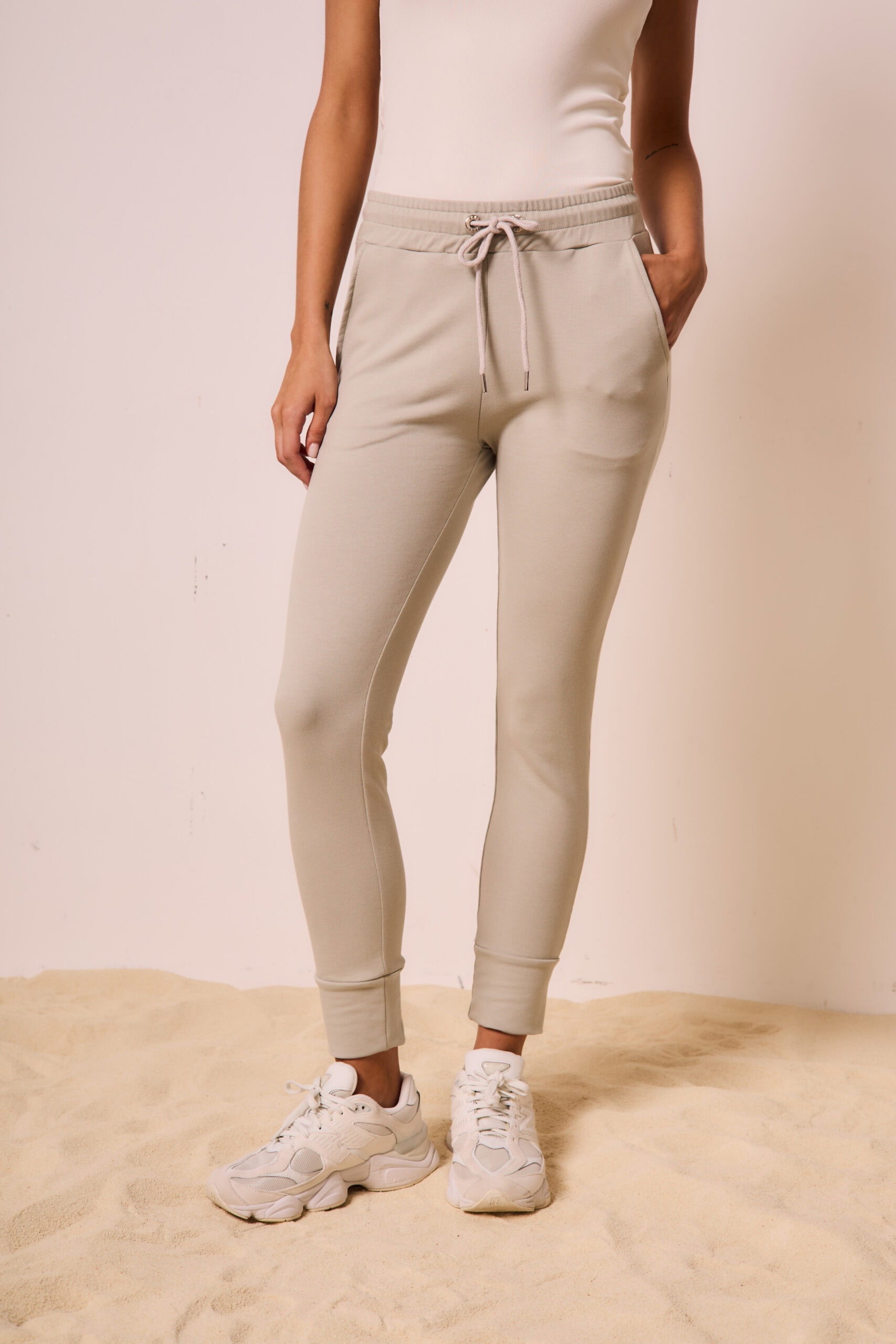 Babucha de mujer de rustico con lycra con cintura elástica con ojalillos personalizados, cordón al tono, detalle de cuerito en el lateral de bolsi