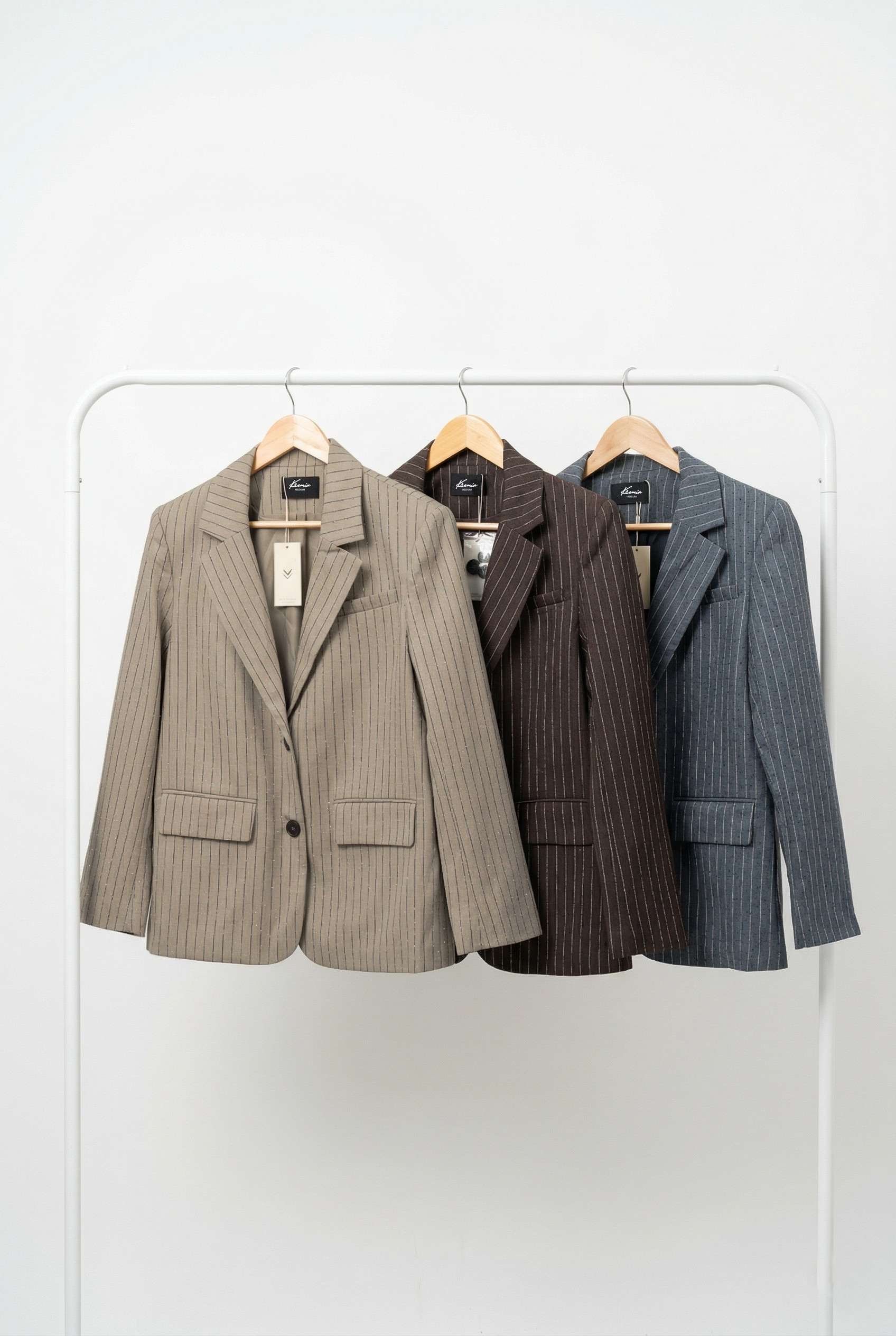 Blazer de mujer importado de calce oversize con hombreras que mejoran el calce con cuello solapa,lleva bolsillos ojal con tapa en delantero el acceso es mediante botones frontales marmolados también usados en los puños. Confeccionado con tela sastrería con estampado de rayas finas en vertical adherido llevan unos hotfix realzando así a un diseño moderno y llamativo en el interior está forrado con tafeta.