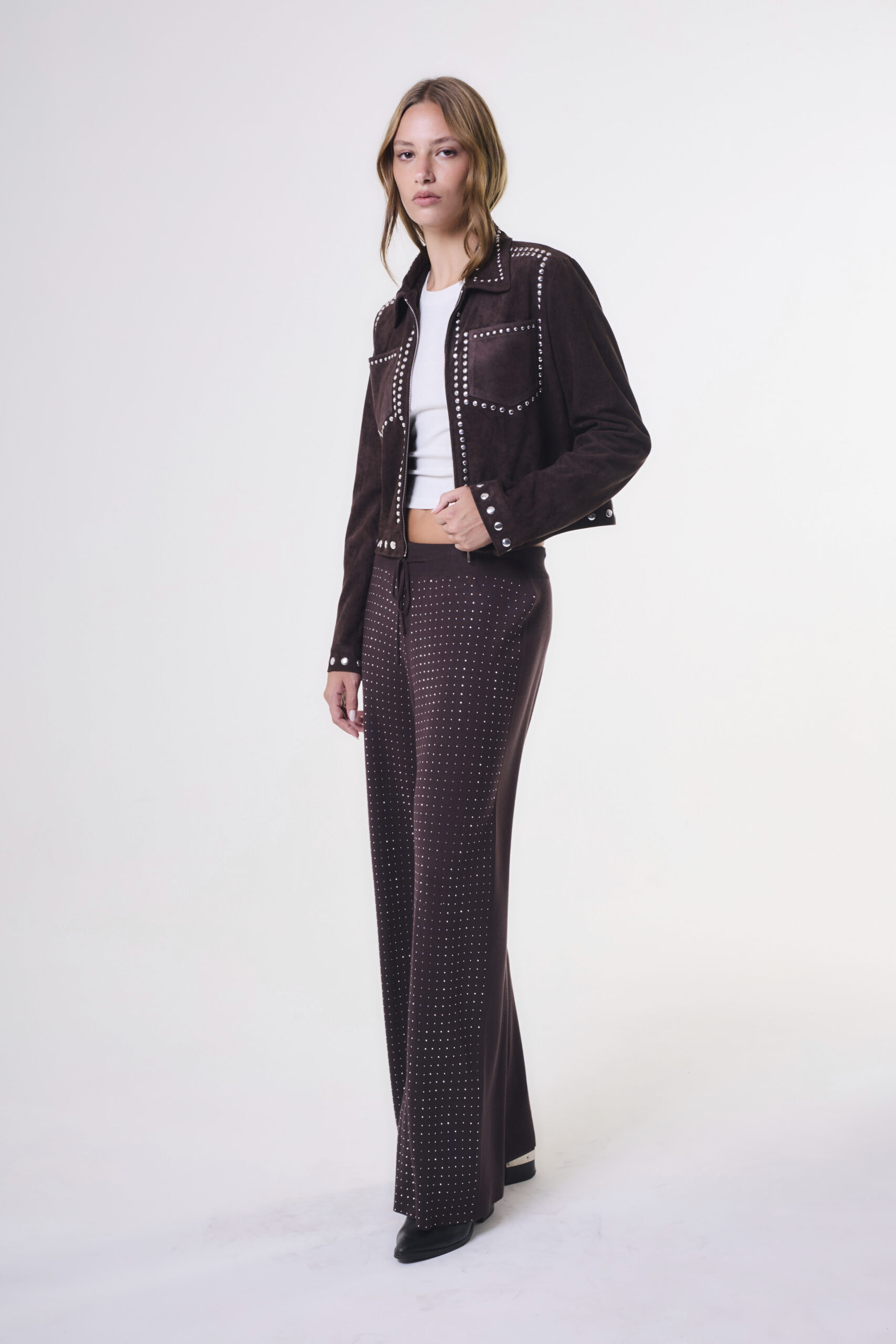 La modelo está usando talle S color Off Whitte.