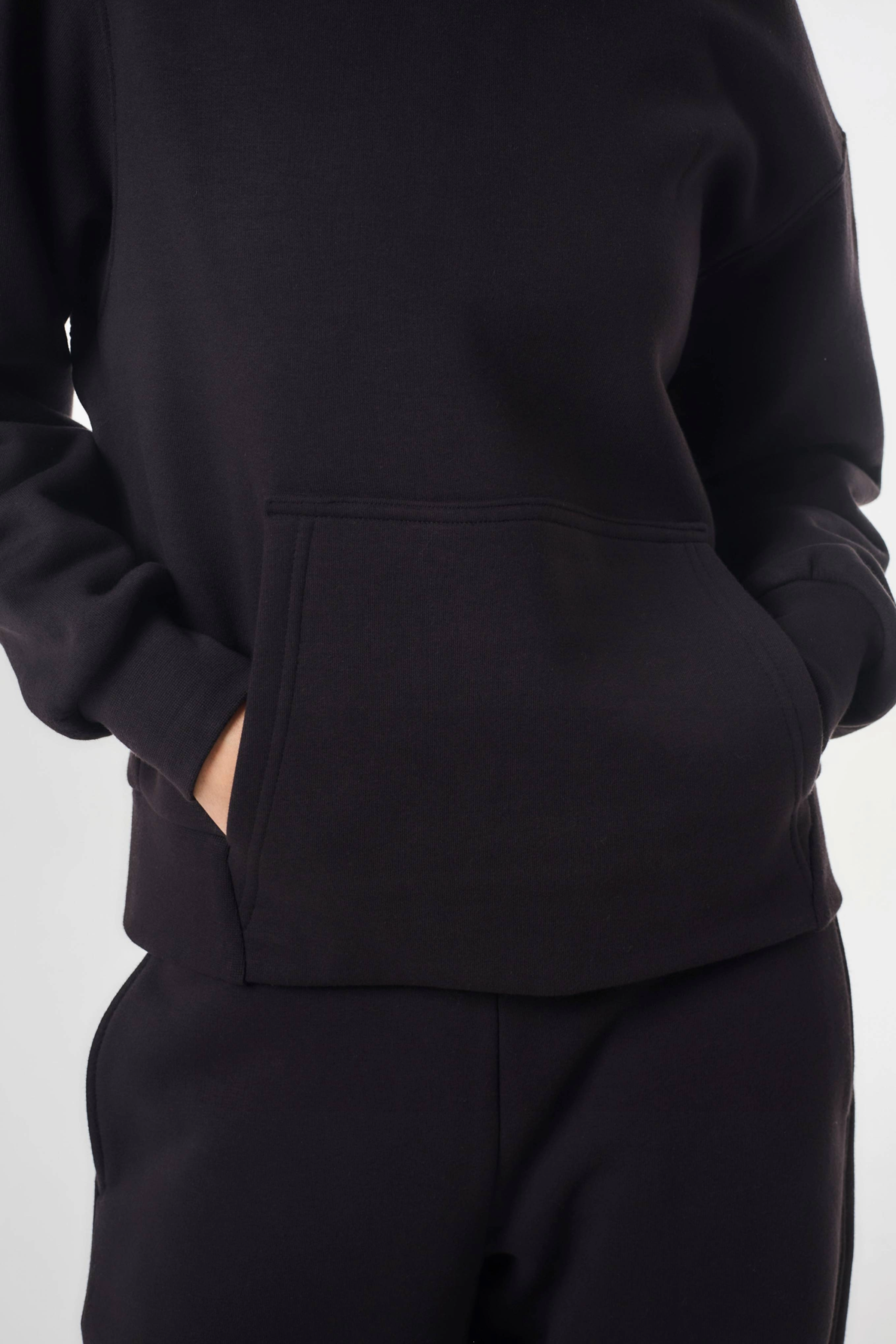 Buzo de friza con capucha y bolsillo canguro.