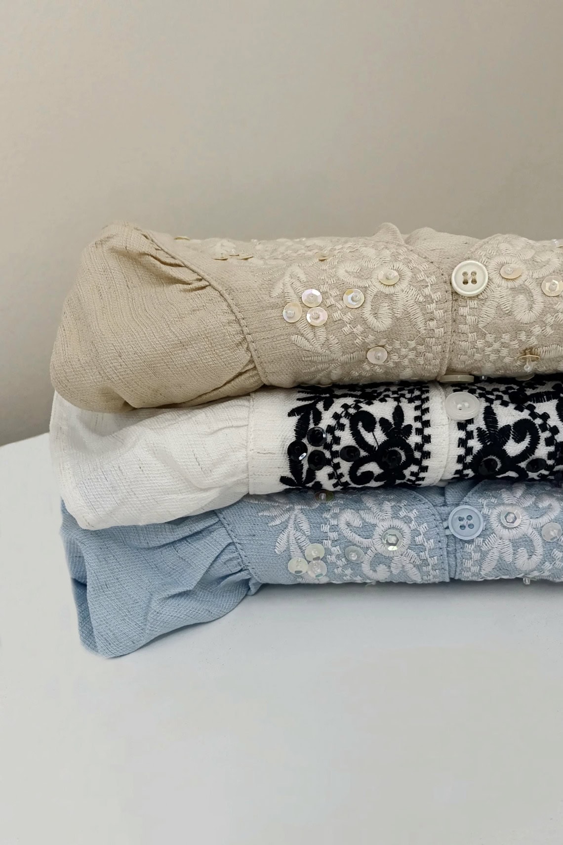 Beige, Blanco, Celeste", Negro