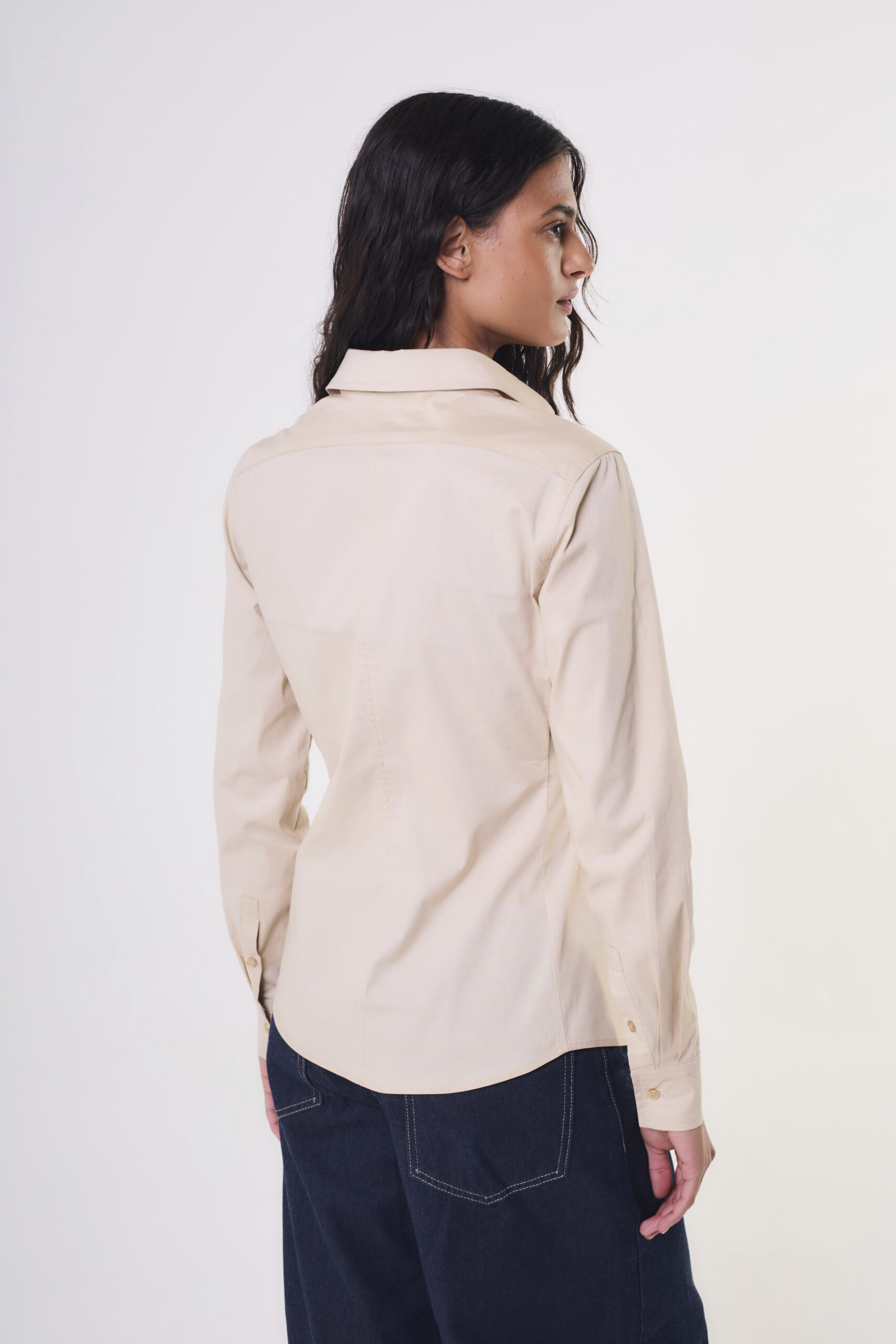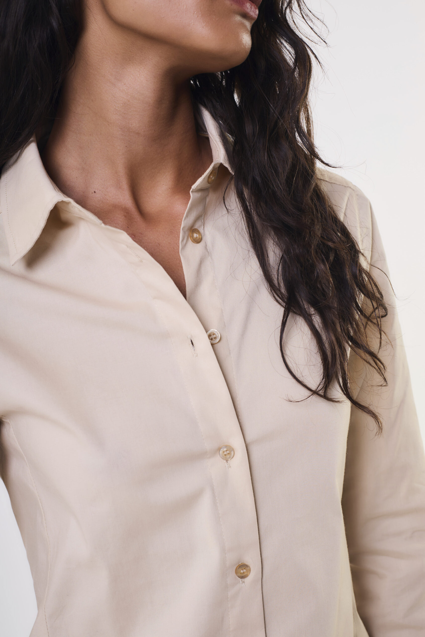Camisa de mujer importada entallada. Confeccionado en poplin elastizada.