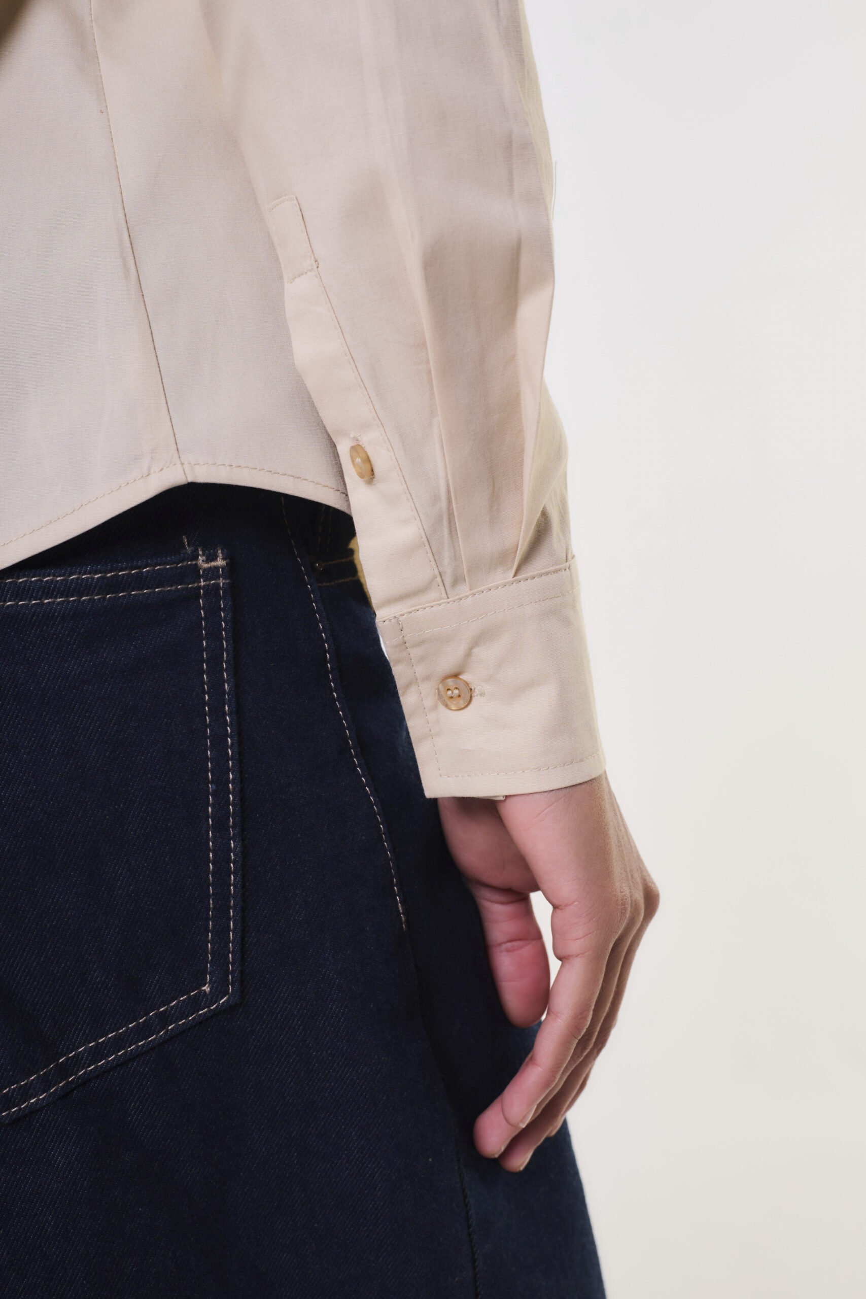 La modelo está usando talle S color Beige.
