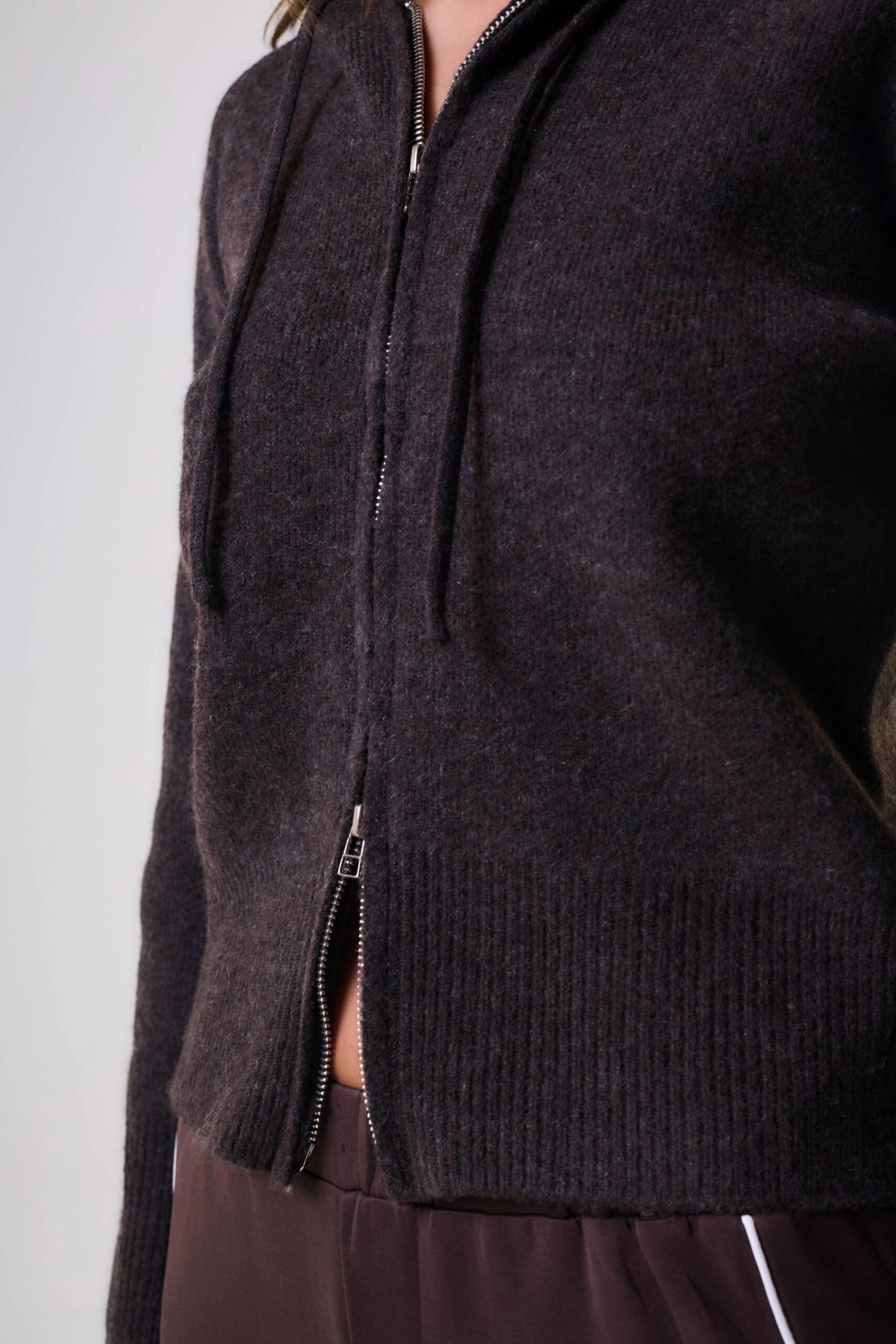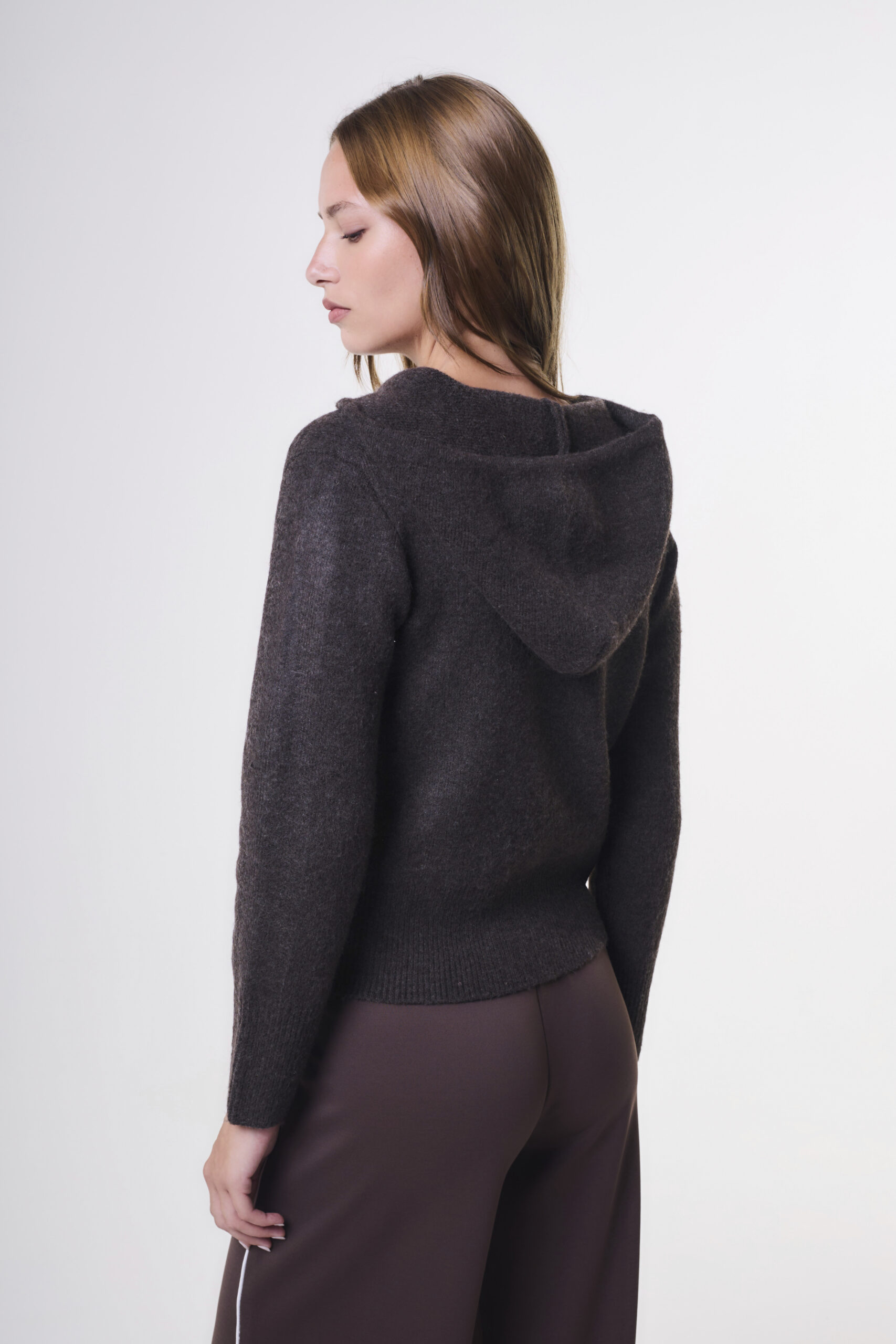 La modelo está usando talle M color Choco Oscuro.