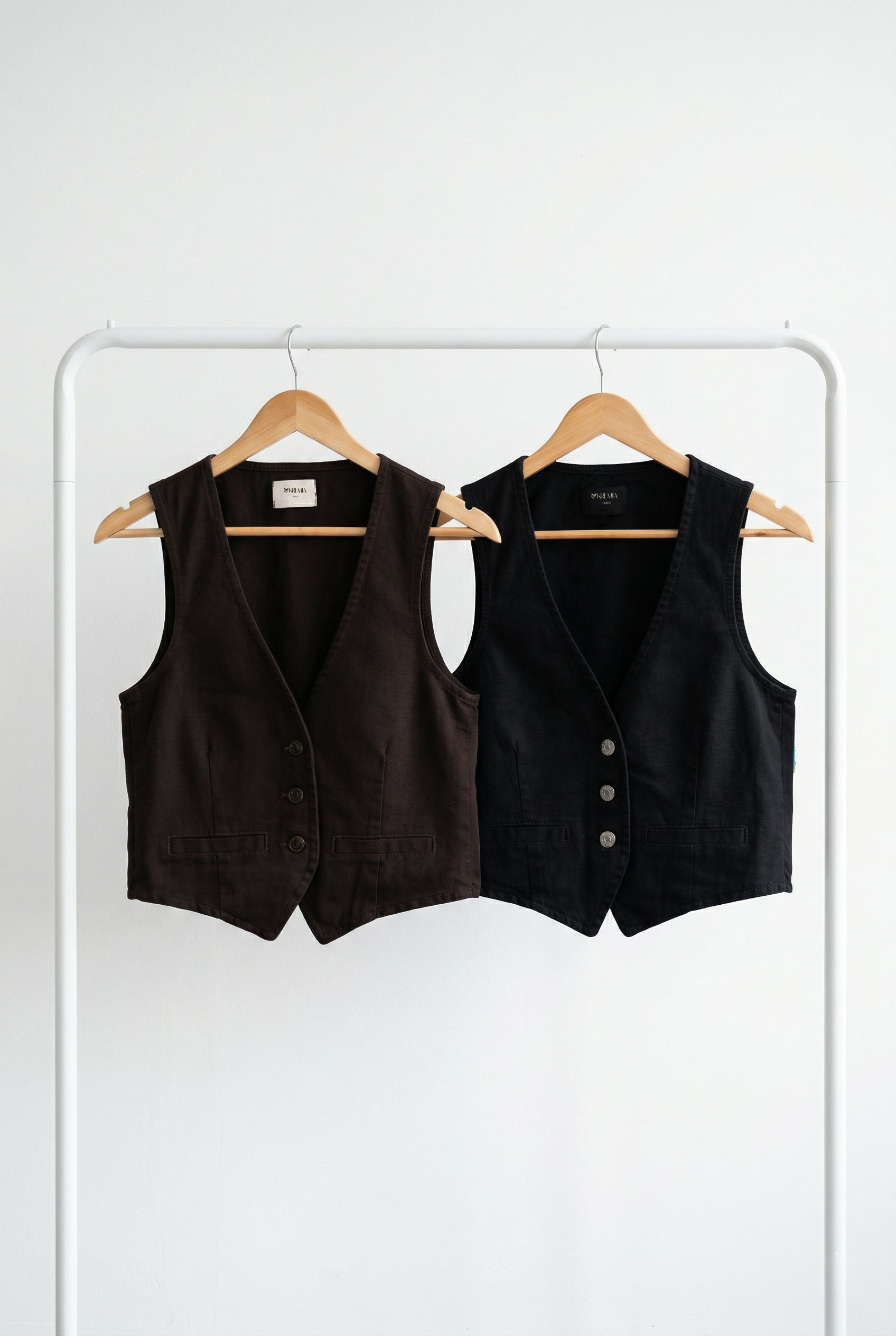Chaleco clásico con pinzas de entalle confeccionado en gabardina.