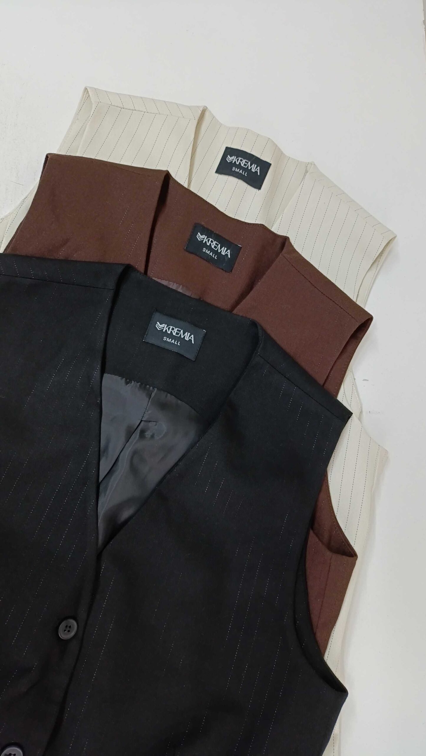 Chaleco hecho en sastrero rayado forrado con tafeta.