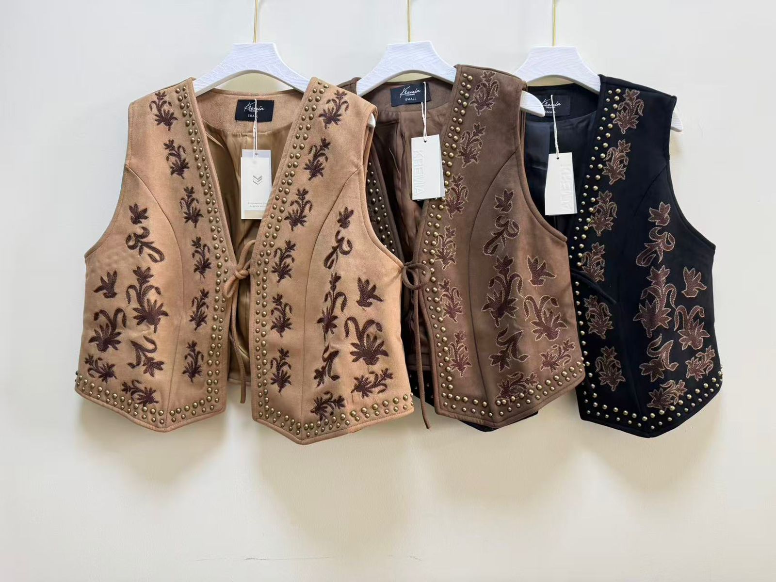 Chaleco de mujer importado de tela suede y forrado completamente.
