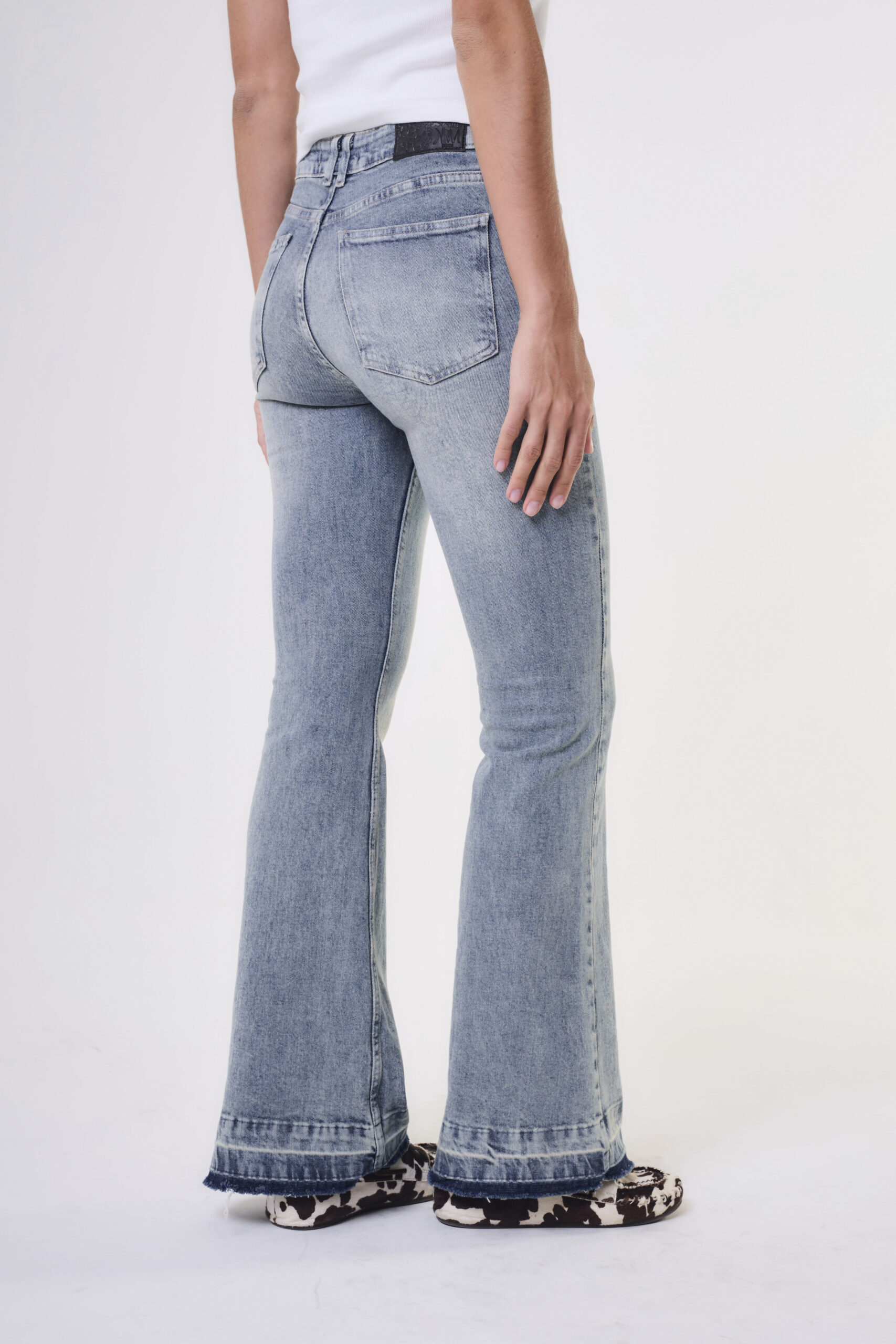 Jean de mujer oxford tiro medio. Apertura de botón personalizado y cierre YKK. La tela es importada de excelente calidad.