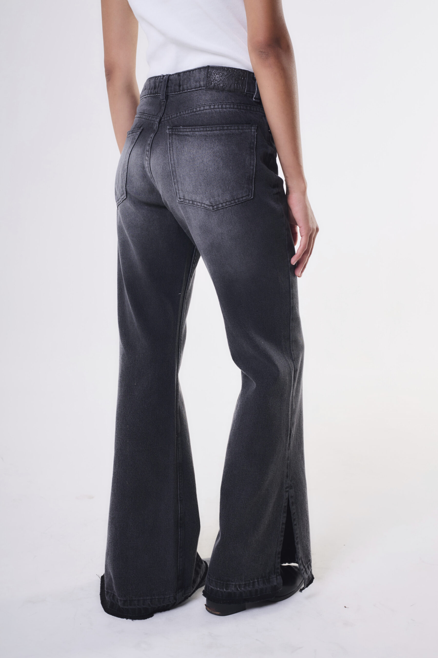 Jean de mujer Oxford tiro alto con tajo y bajada de ruedo. Apertura cierre YKK, botón matte pintado al tono y atraques personalizados. La tela es importada de excelente calidad.