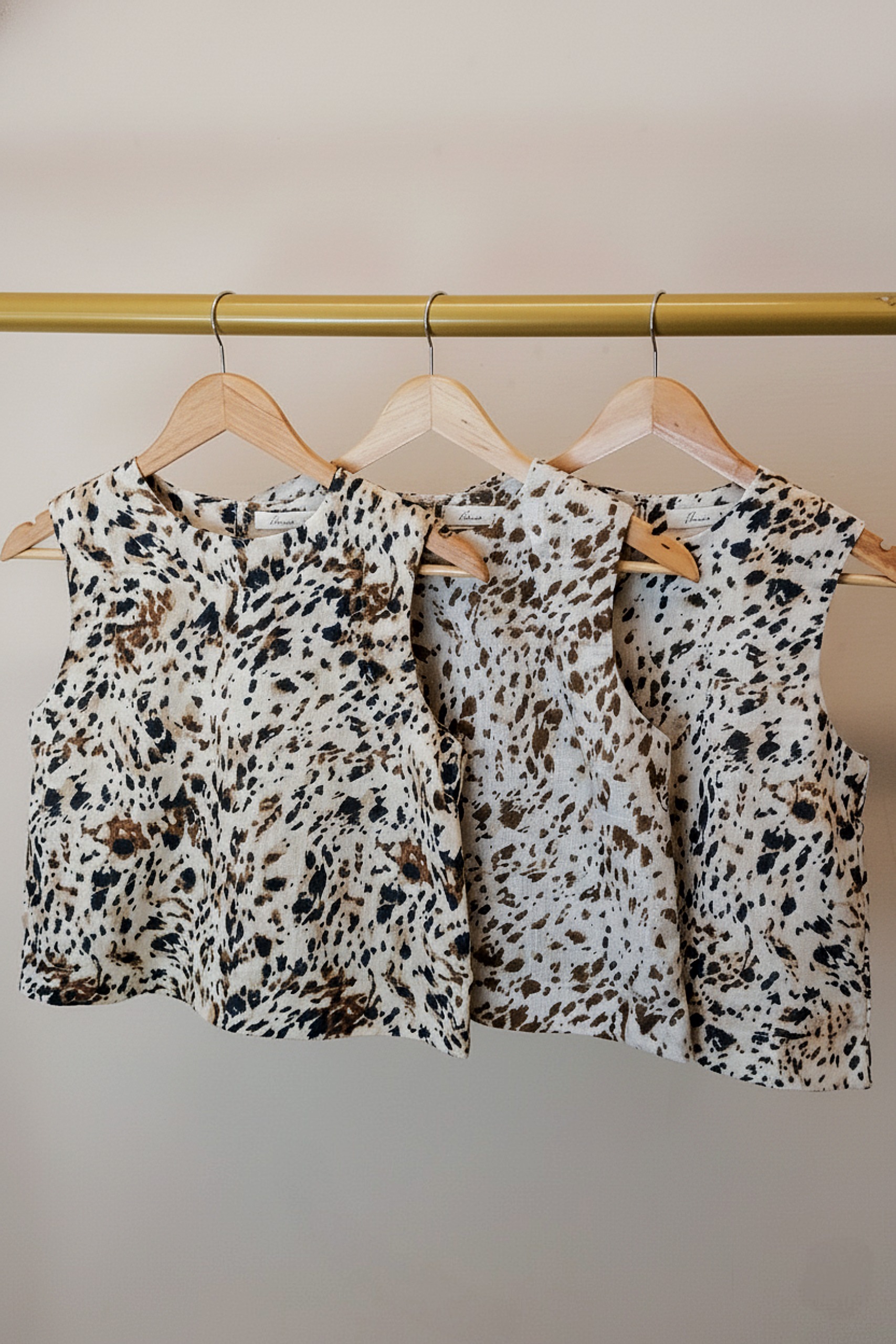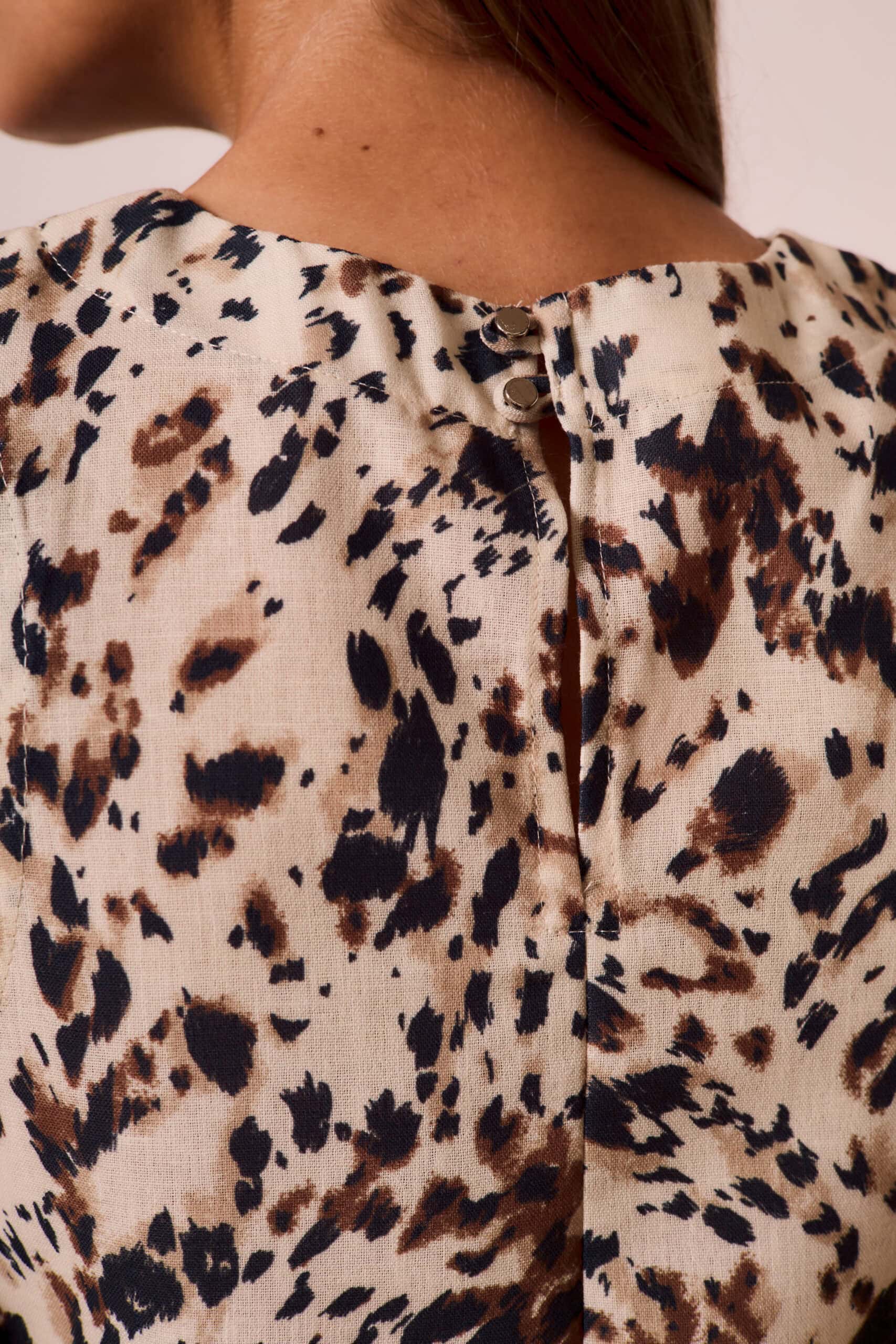 Musculosa recta de cuello redondo con detalle de zócalo en hombros. Hecho en lino con estampa animal print.