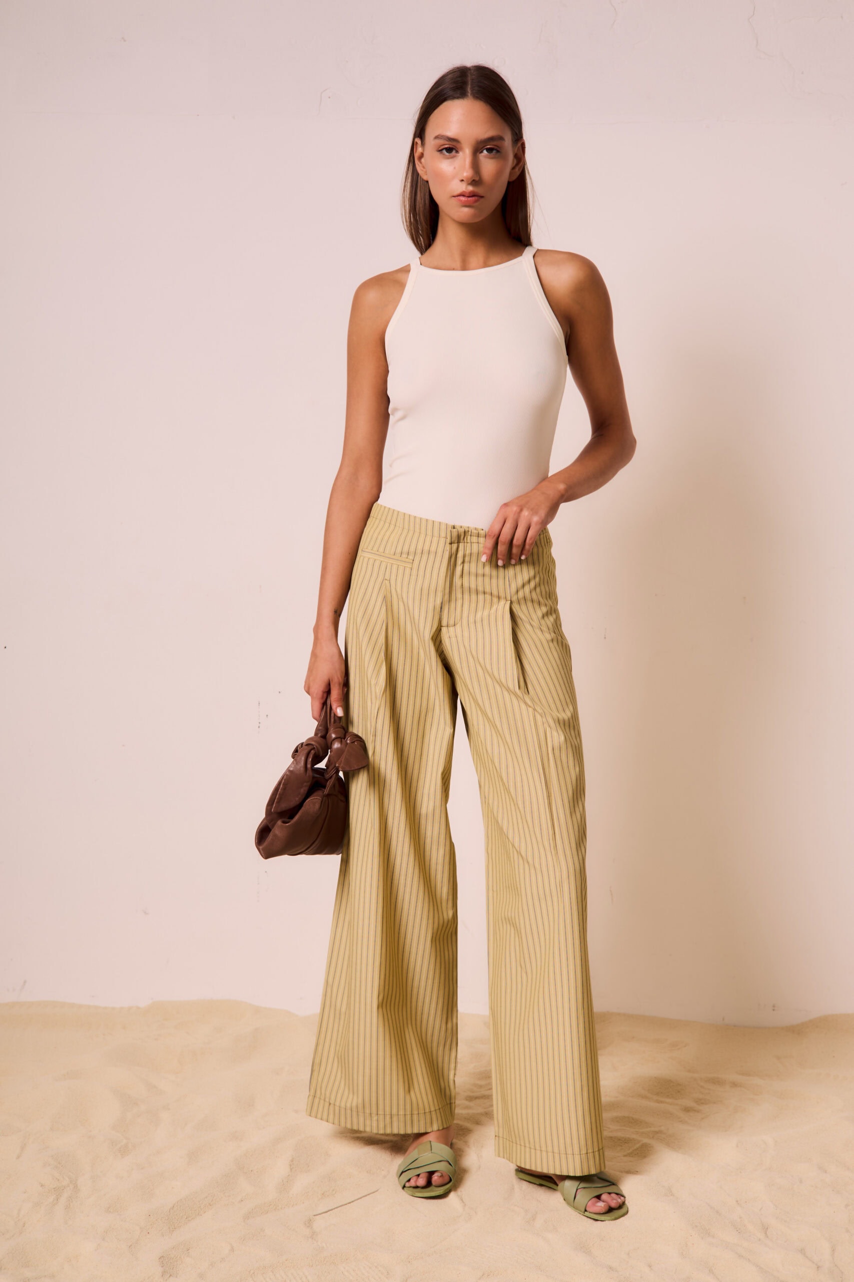 La modelo está usando talle S color Natural