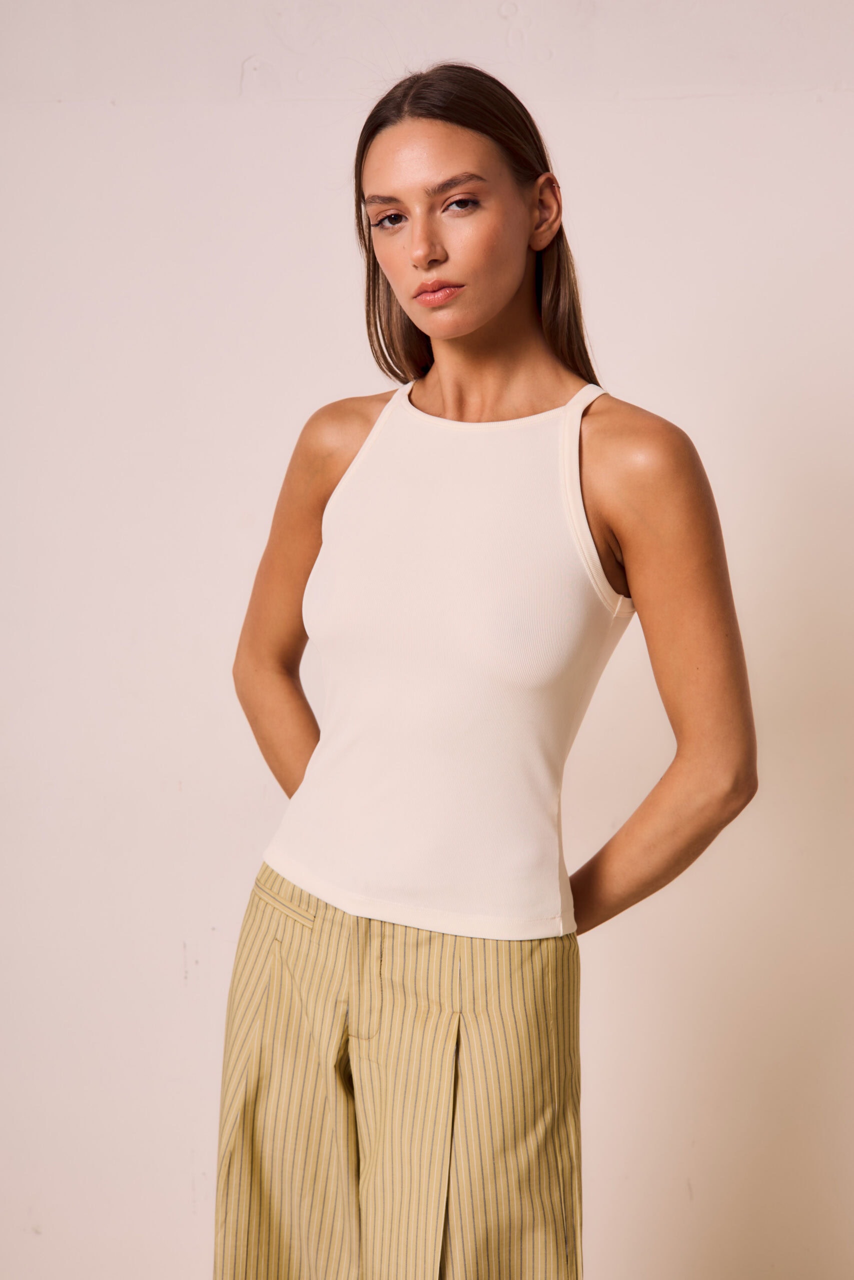 Musculosa de calce adherente con escote cuadrado subido.