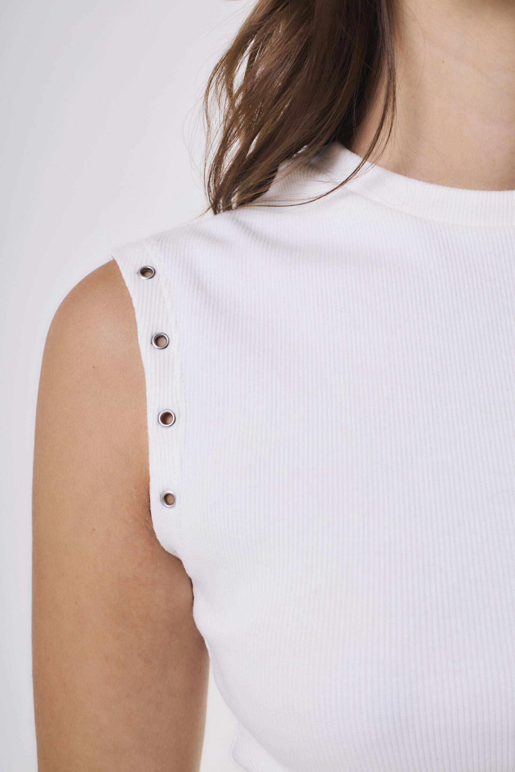 Musculosa con detalle de ojalillos en el recorrido de sisas.