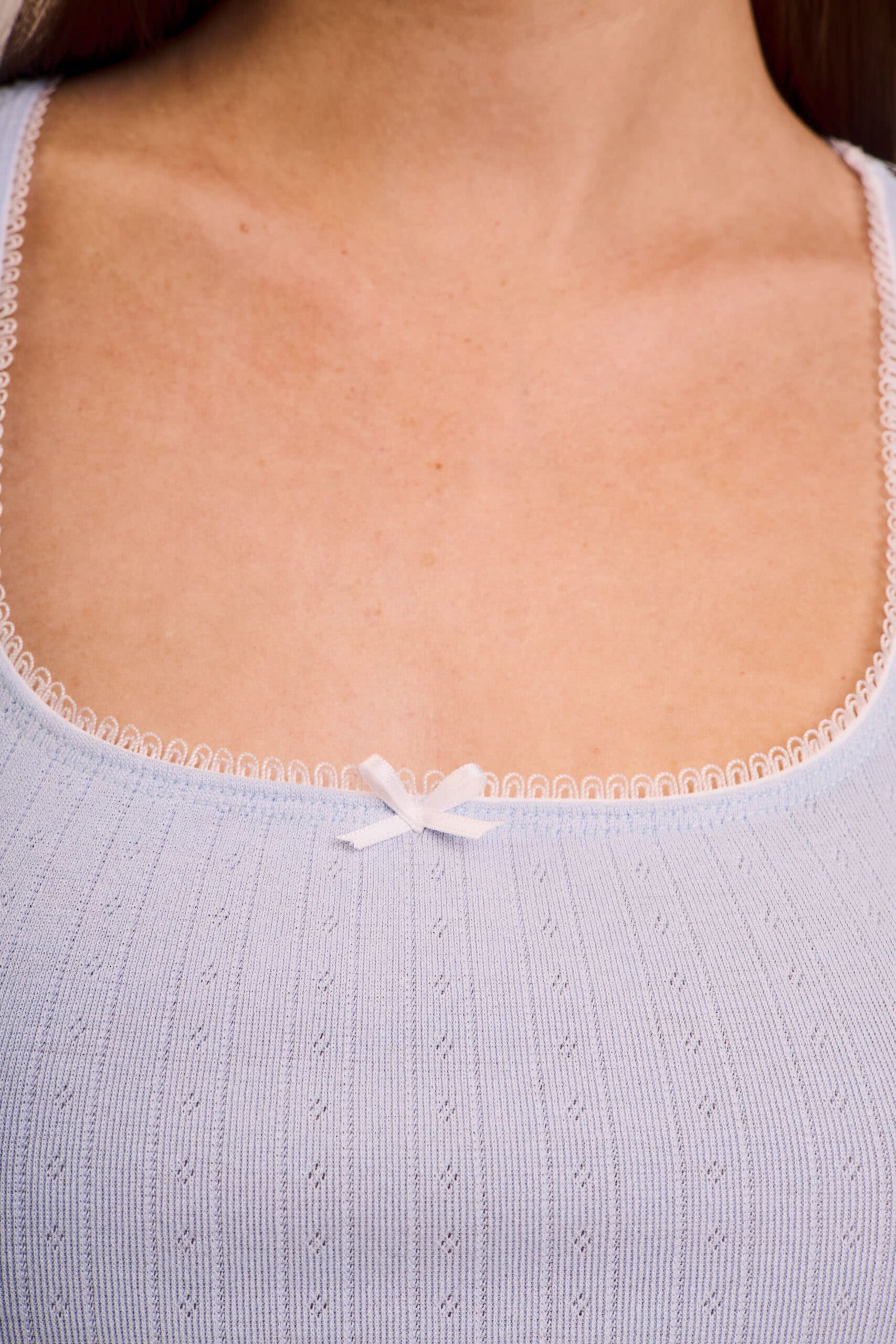 Musculosa de mujer de escote cuadrado con puntilla con detalle en delantero y recorrido de sisas hecho en rattier de punto.