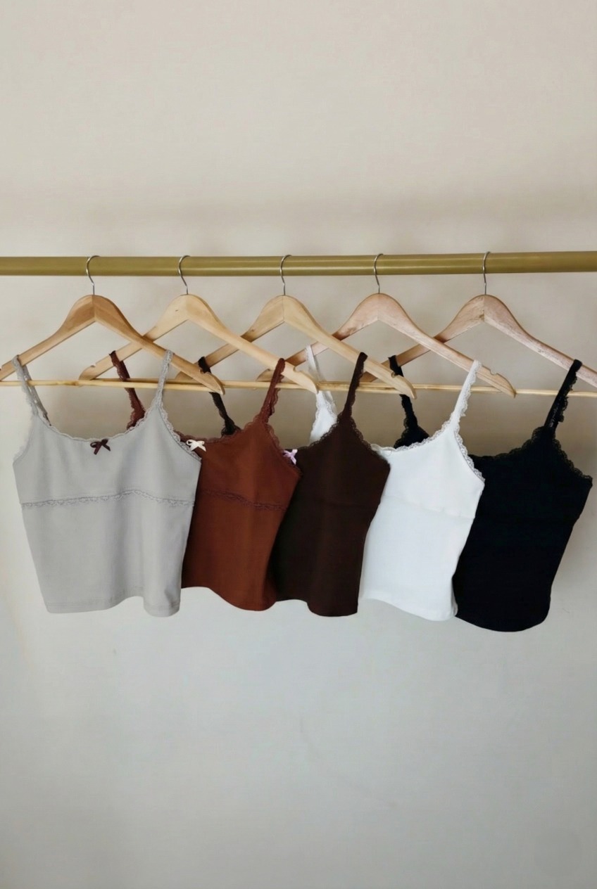 Musculosa con breteles regulables y detalle de puntilla de recorren los mismos.
