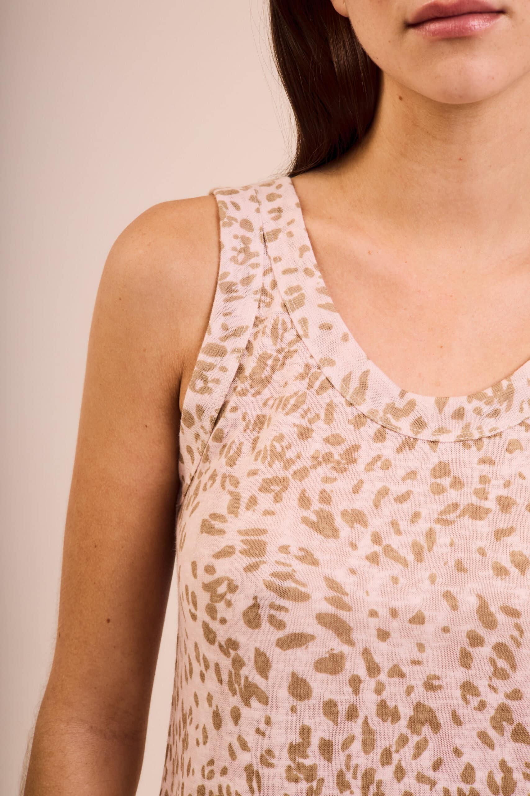 Musculosa de collareta ancha, escote redondo cavado y largo a la cadera. Posee detalle de apretura en laterales.Confeccionada en jersey sublimado con estampa exclusiva de la marca.
