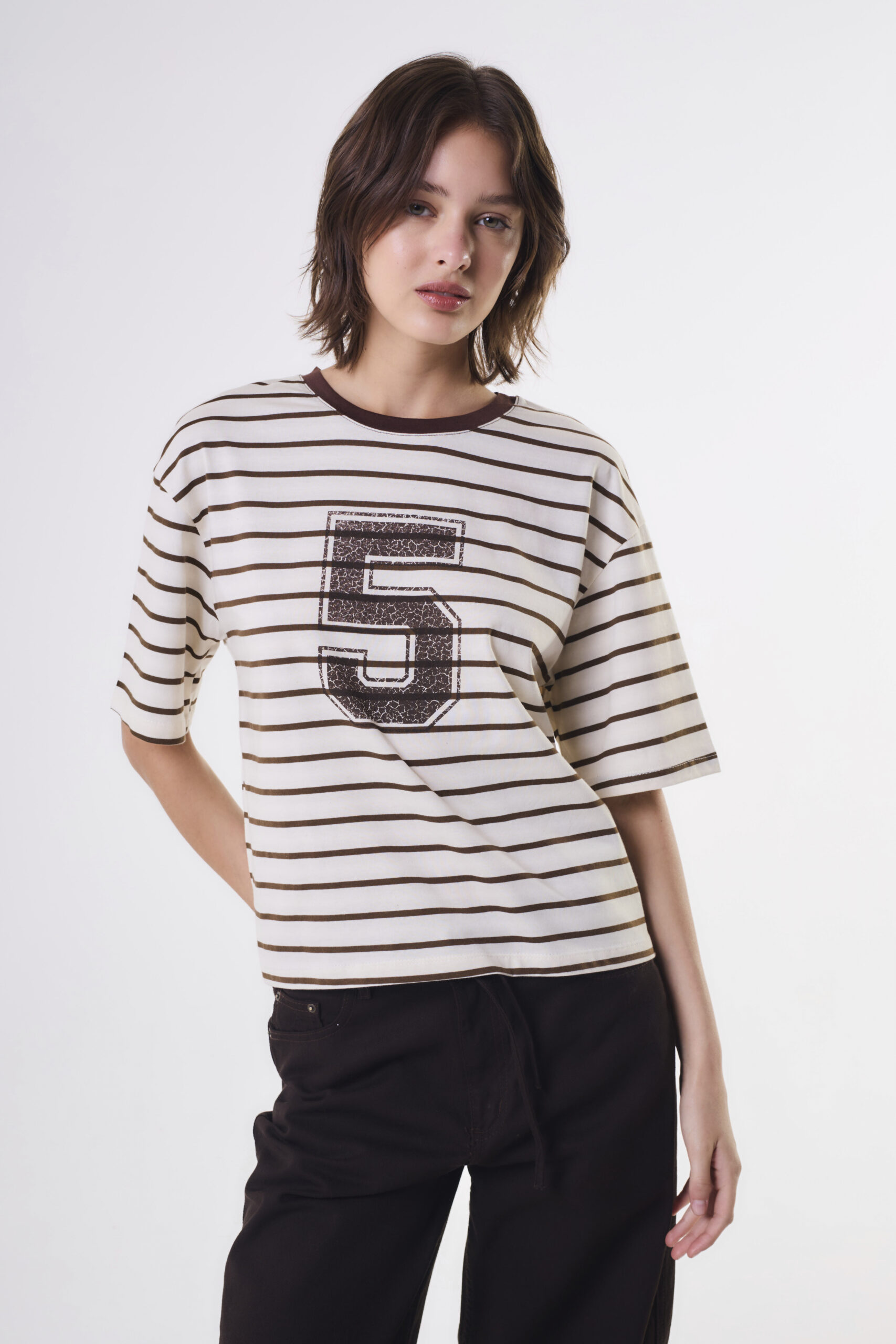 $ 12.000,00Remera de mujer manga larga con combinacion de vivo en mangas y estampa en el delantero.