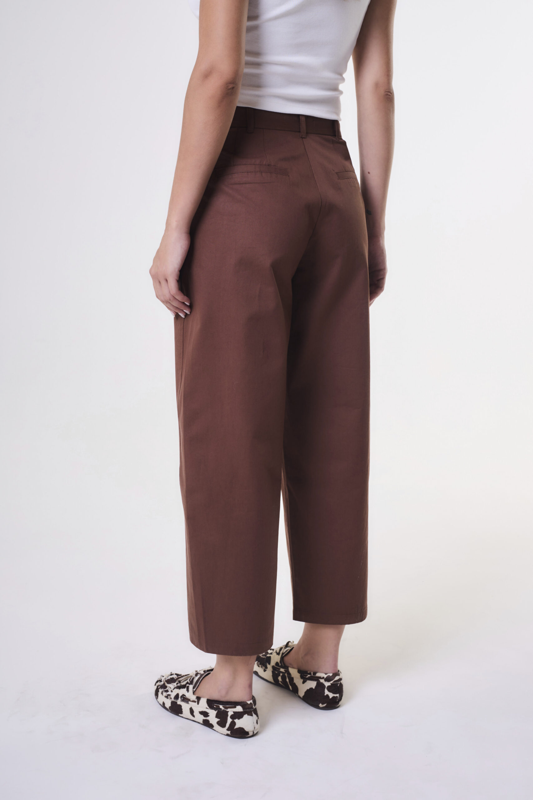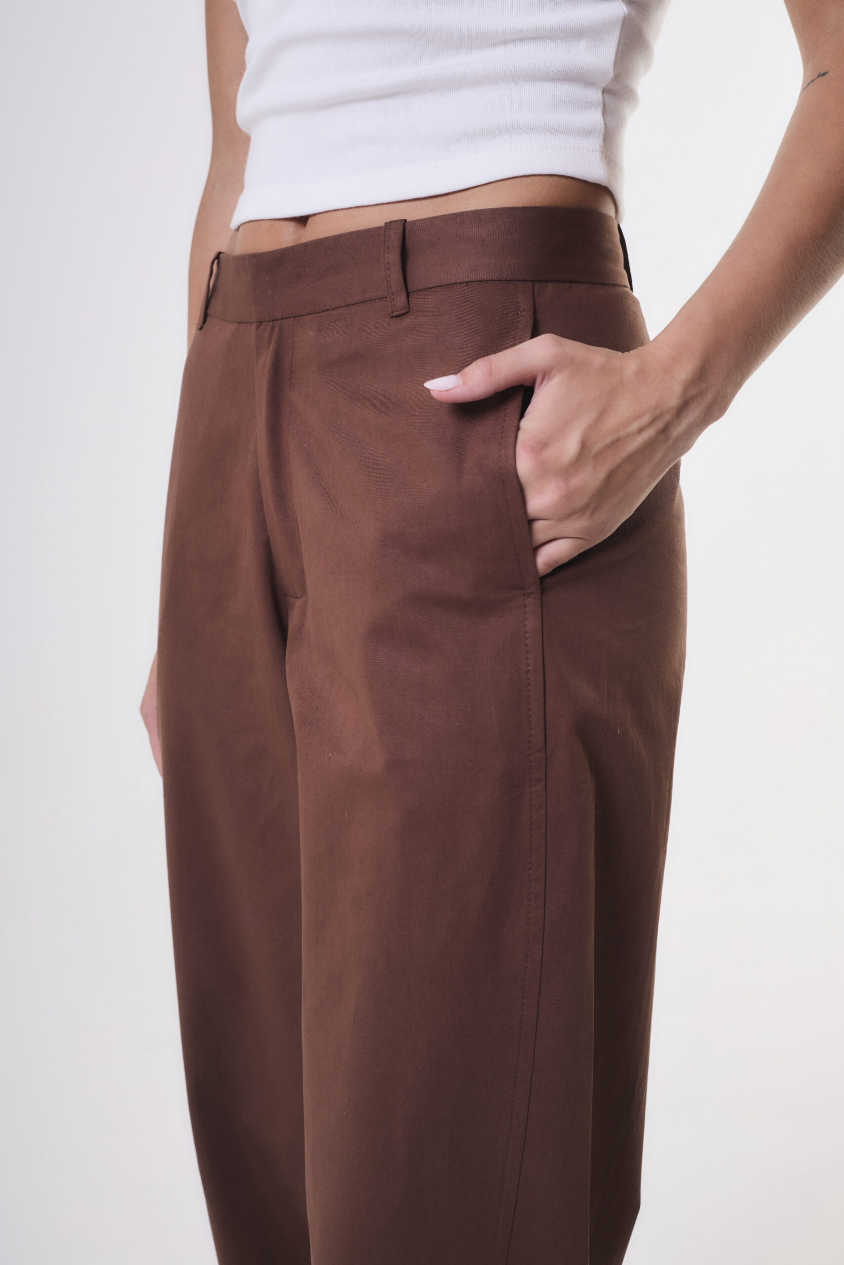 La modelo está usando talle 26 color Chocolate.