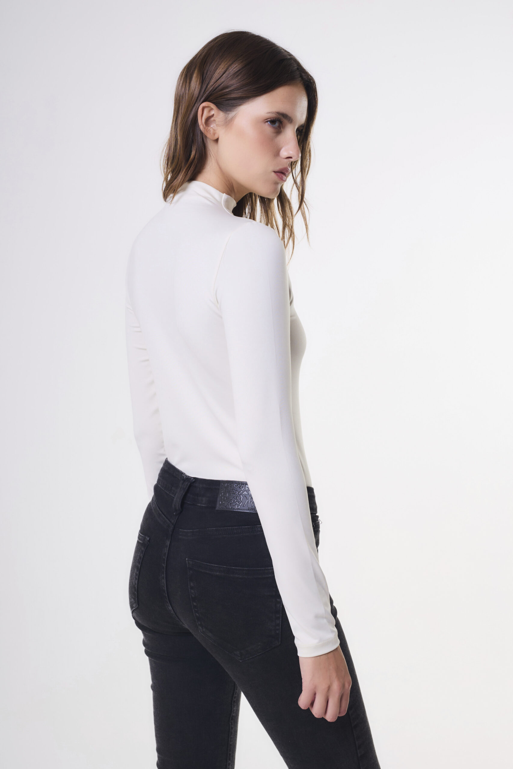 Remera de mujer manga larga de cuello subido de calce adherente.