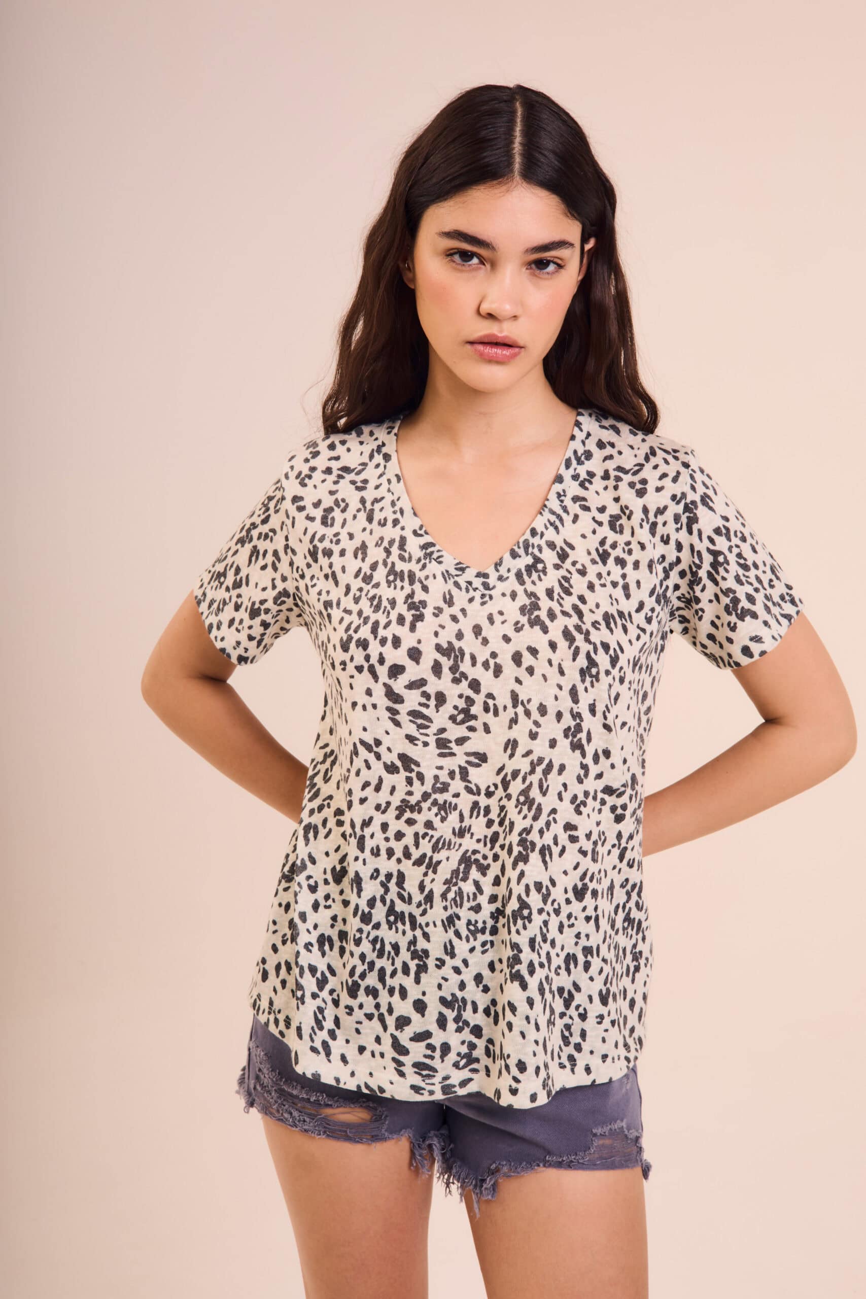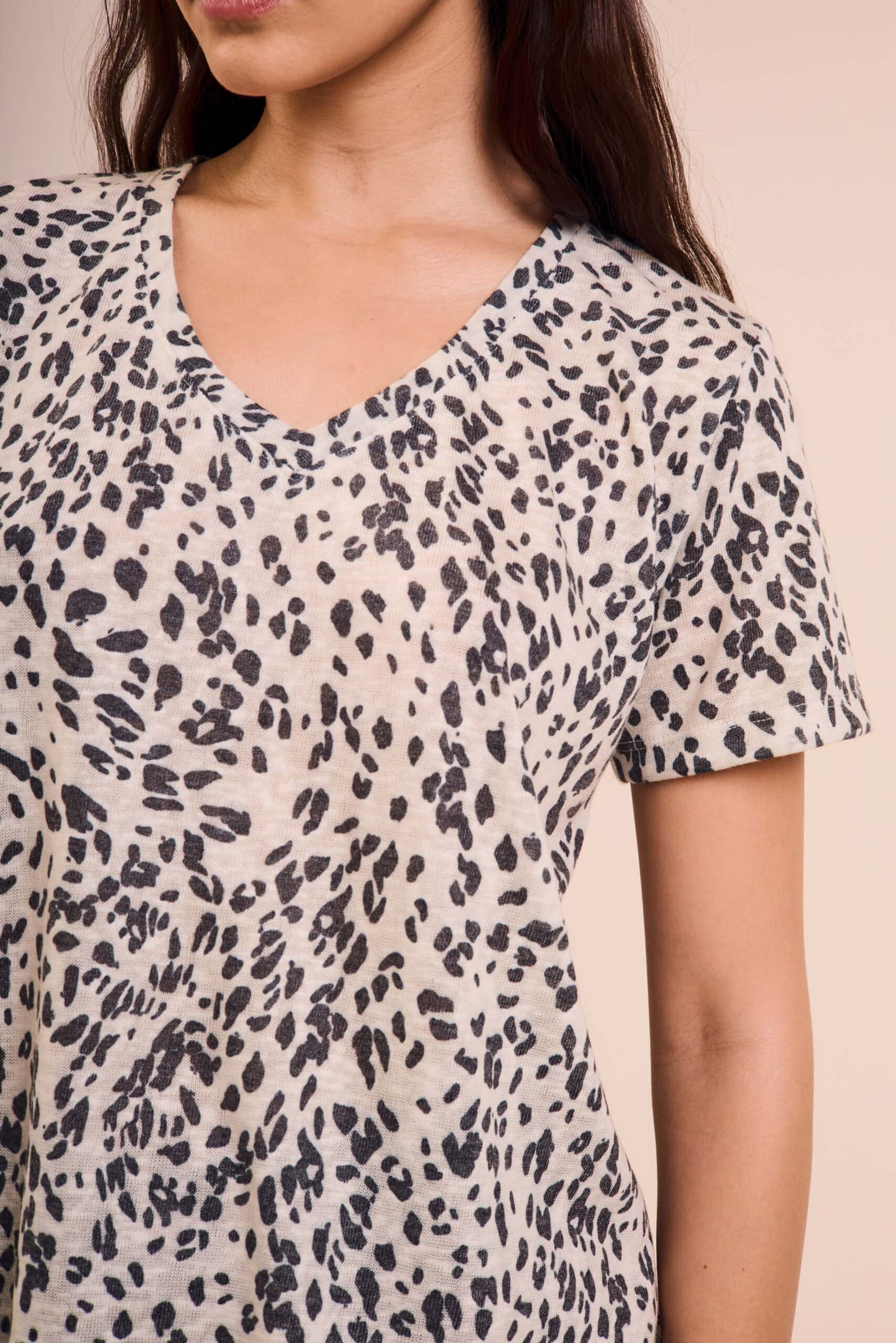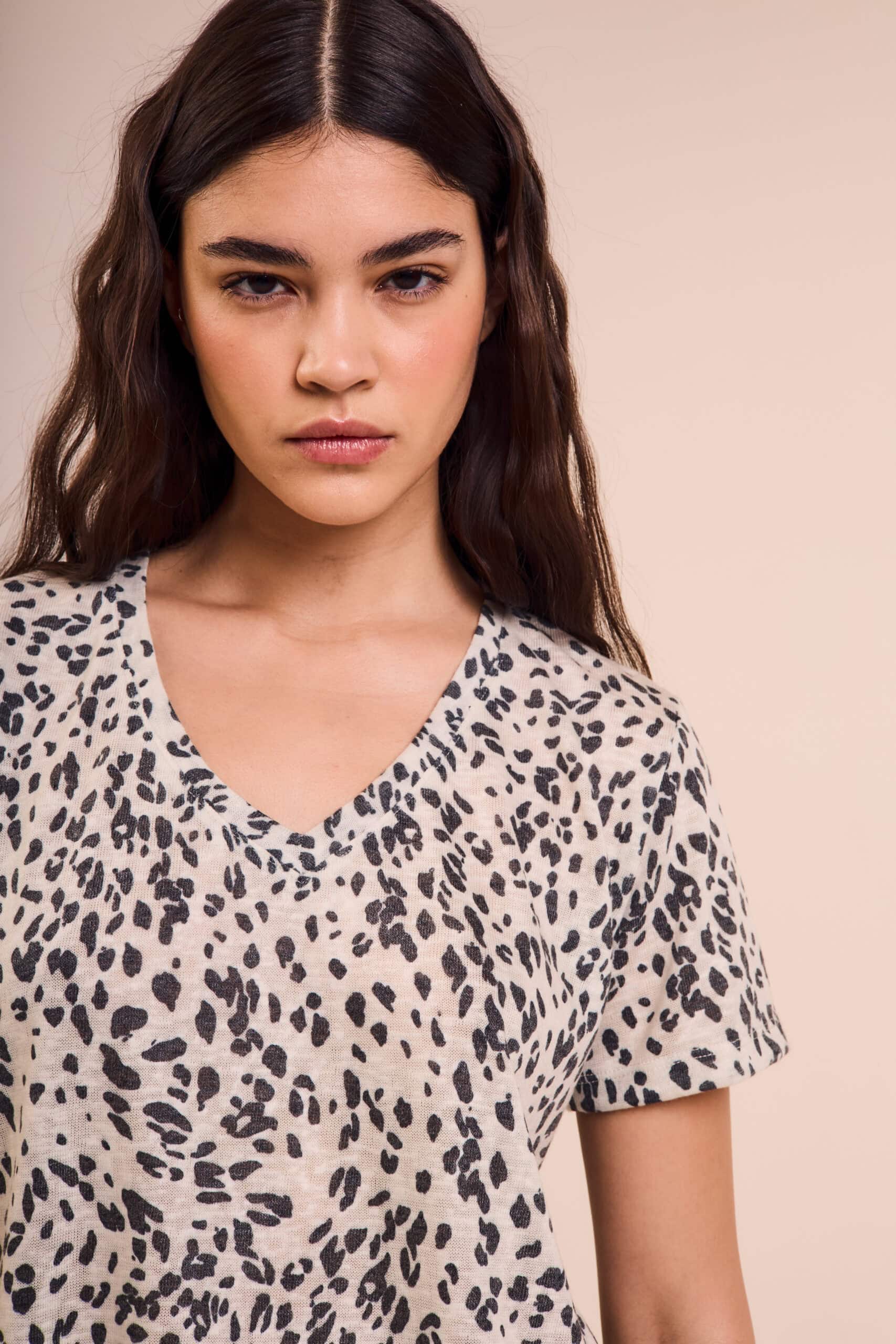 Remera de mujer clásica manga corta de calce recto con escote en V. Confeccionada en jersey sublimado con estampa exclusiva de la marca.