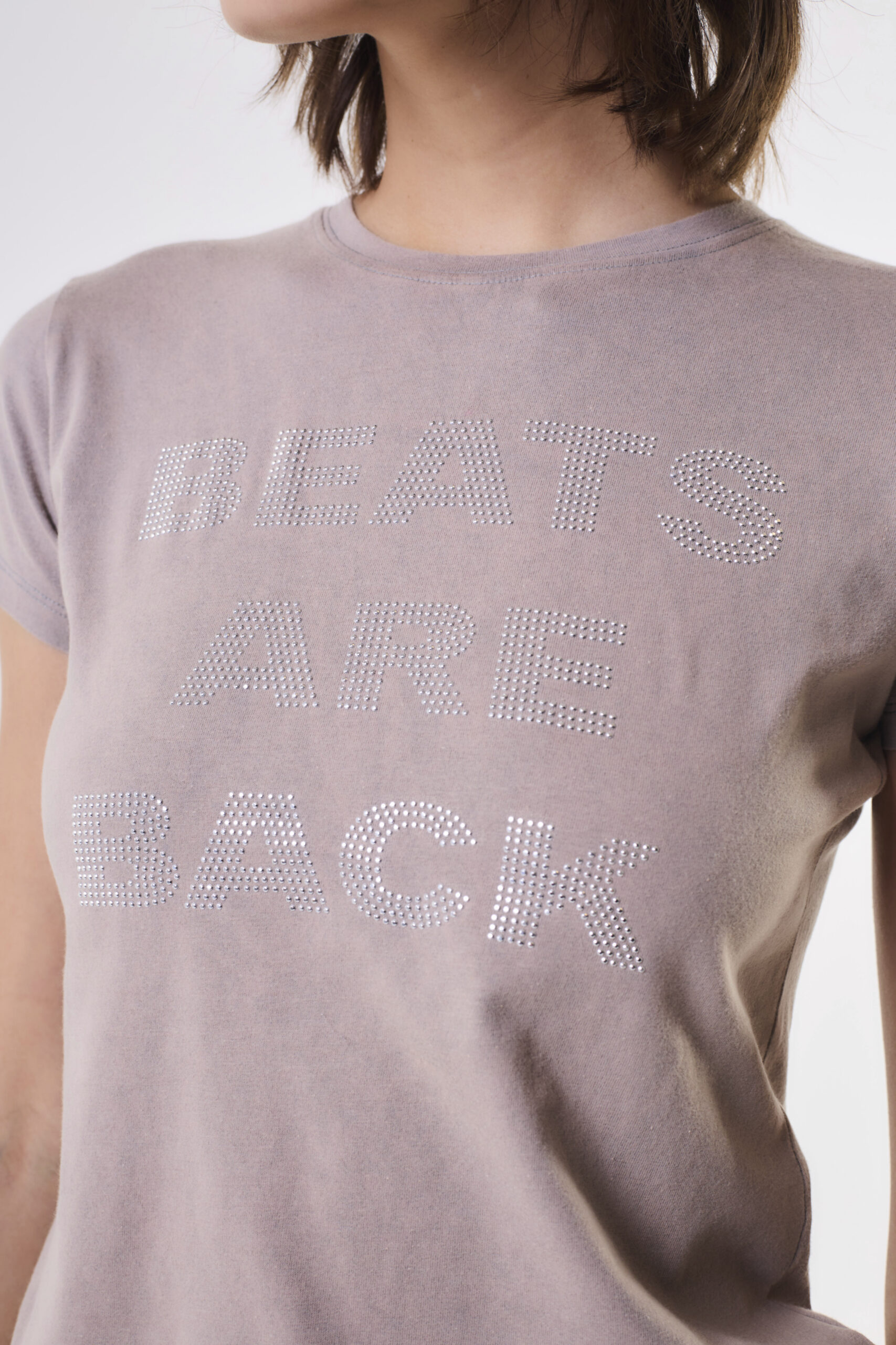 Remera estilo baby tee con diseño central de hotfix facetado 2mm.