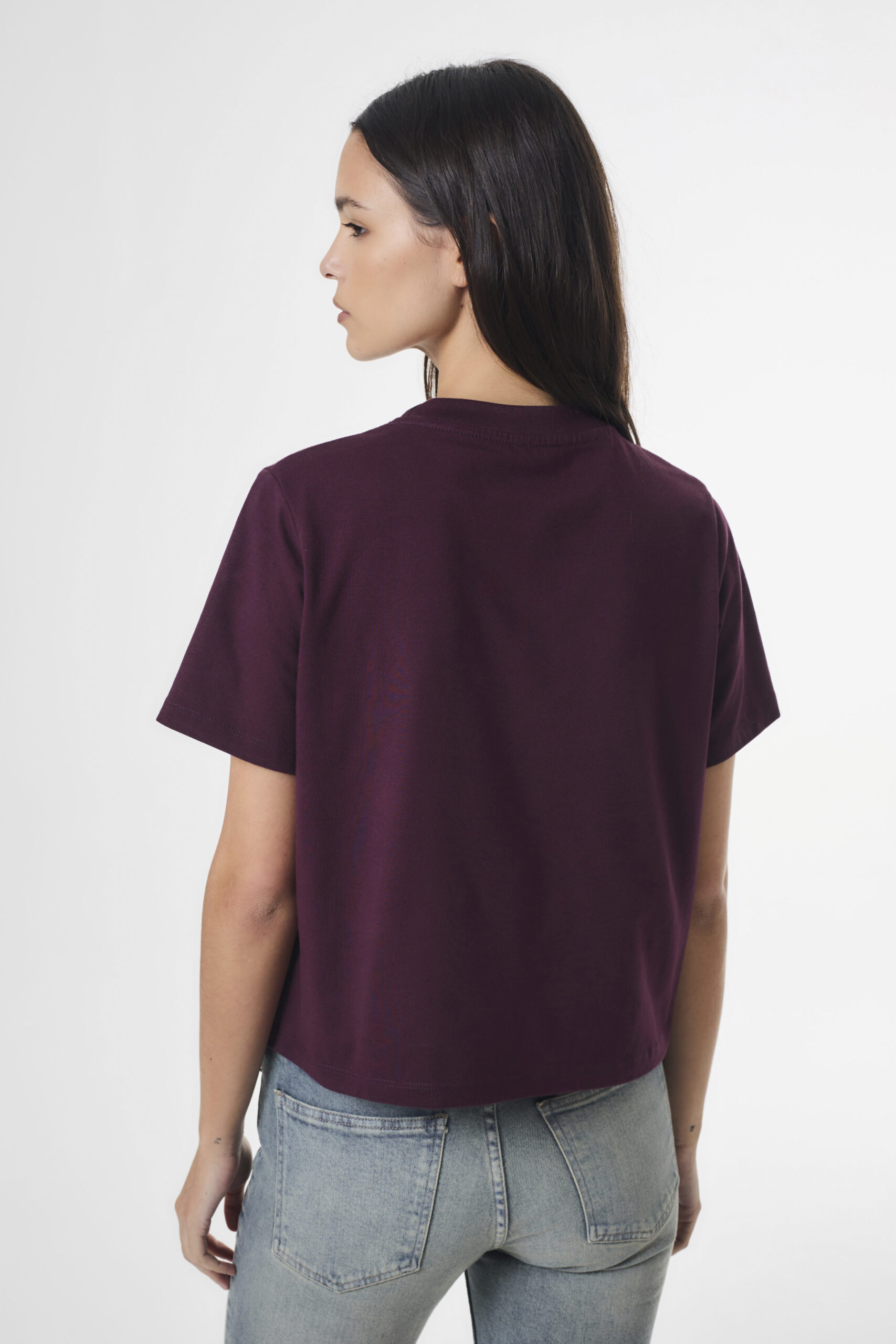 La modelo está usando talle S color Borravino.