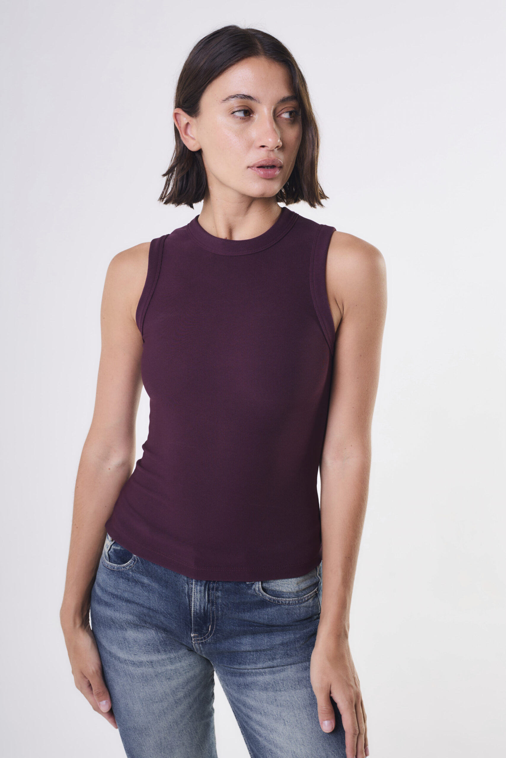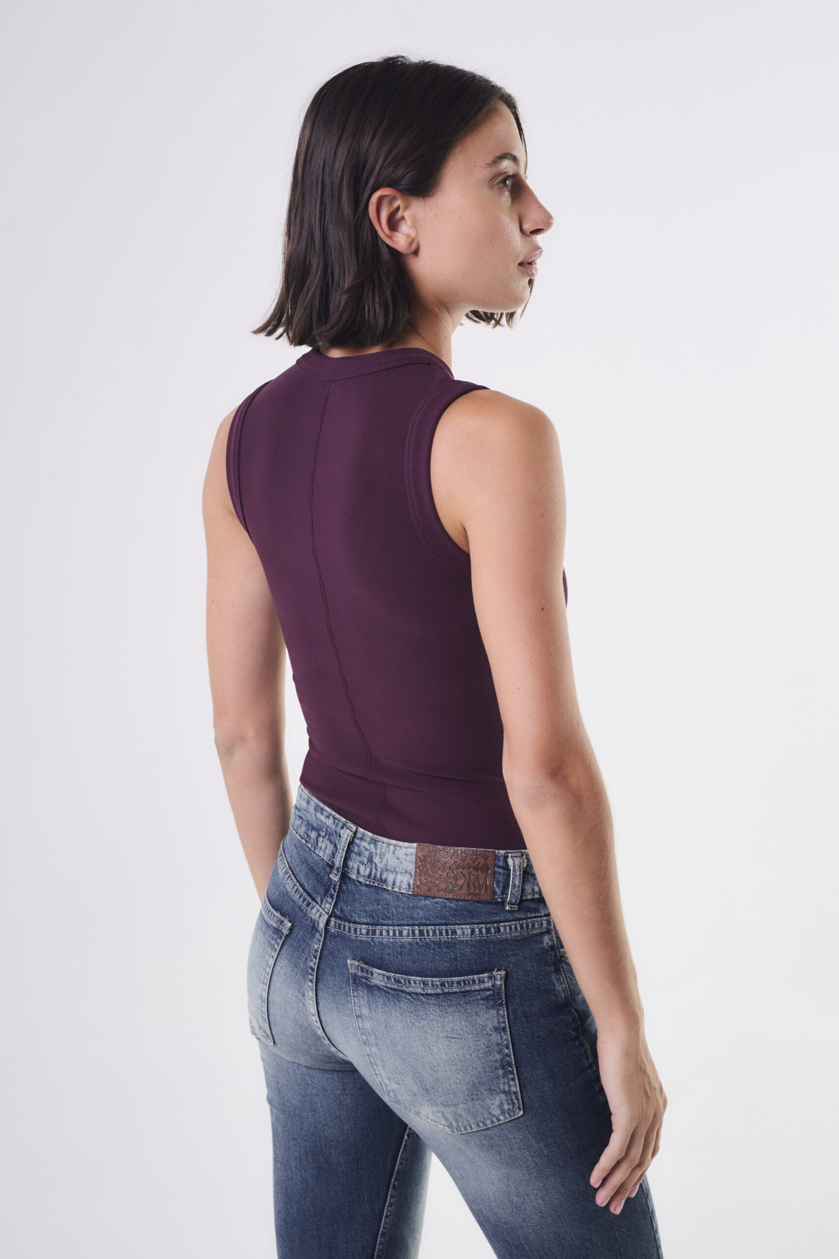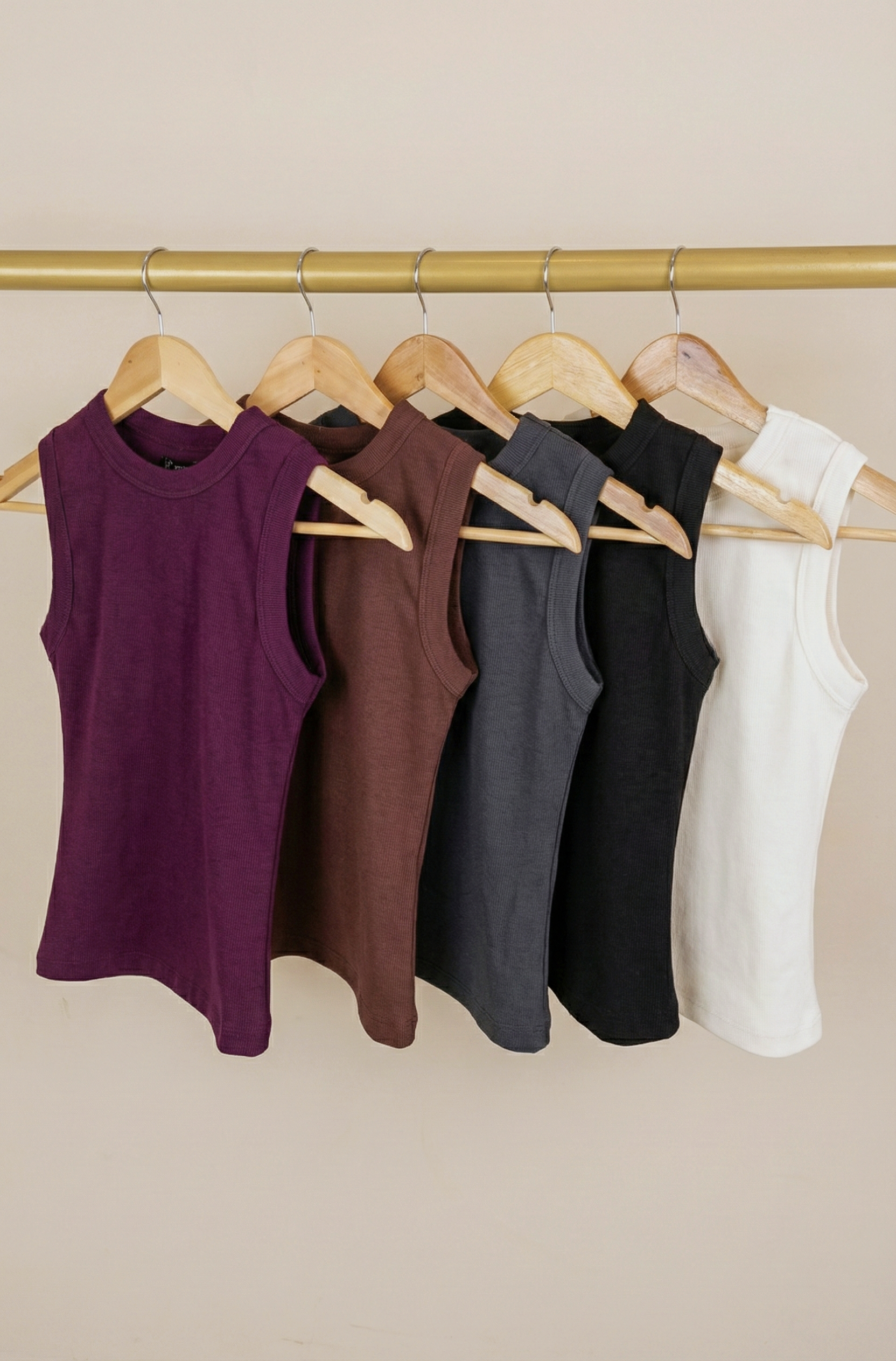 Musculosa de mujer concuello halter con collareta ancha. El calce es adherente y en la espalda central viene con un bordador para ser distinta de las otras básicas.