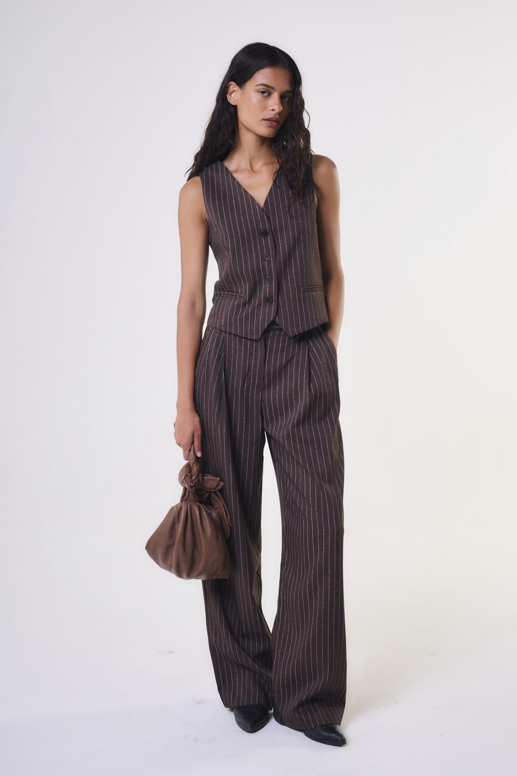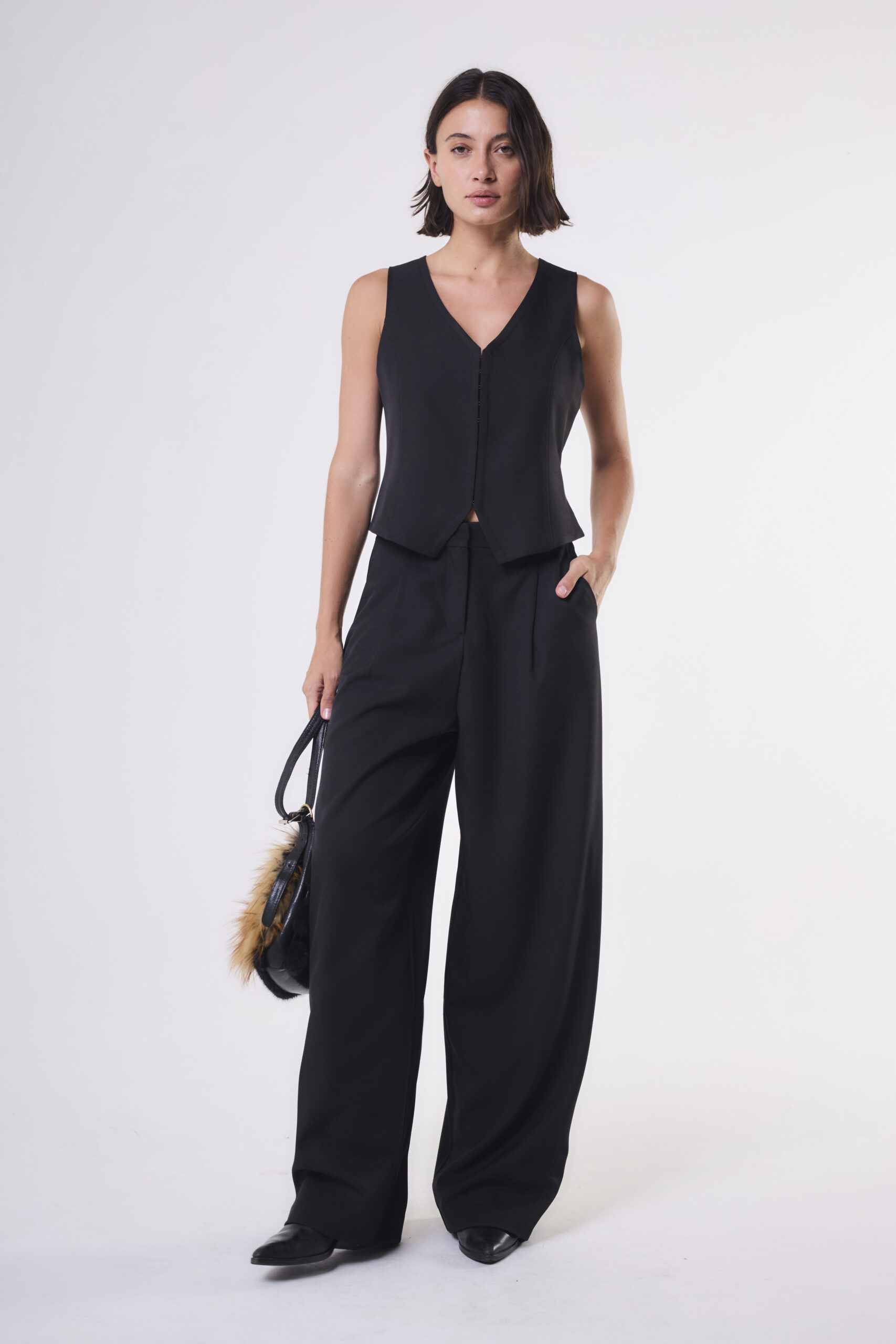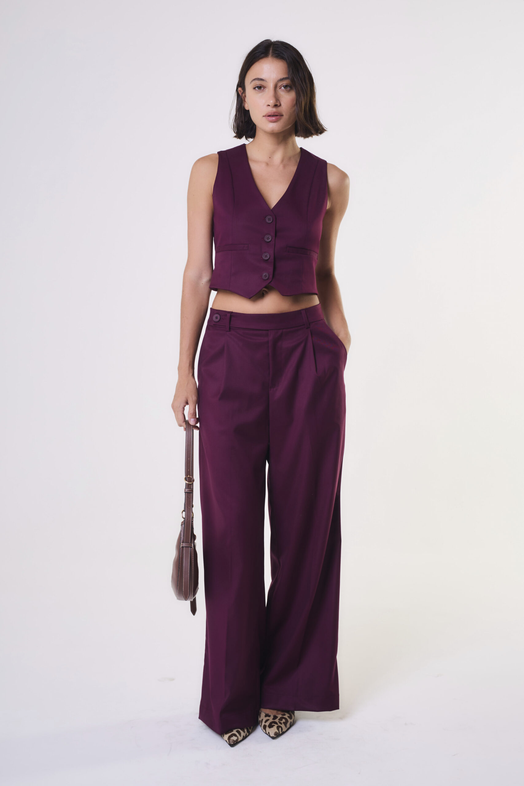 $ 36.000,00Pantalón Oxford tiro alto con tajo y bajada de ruedo.