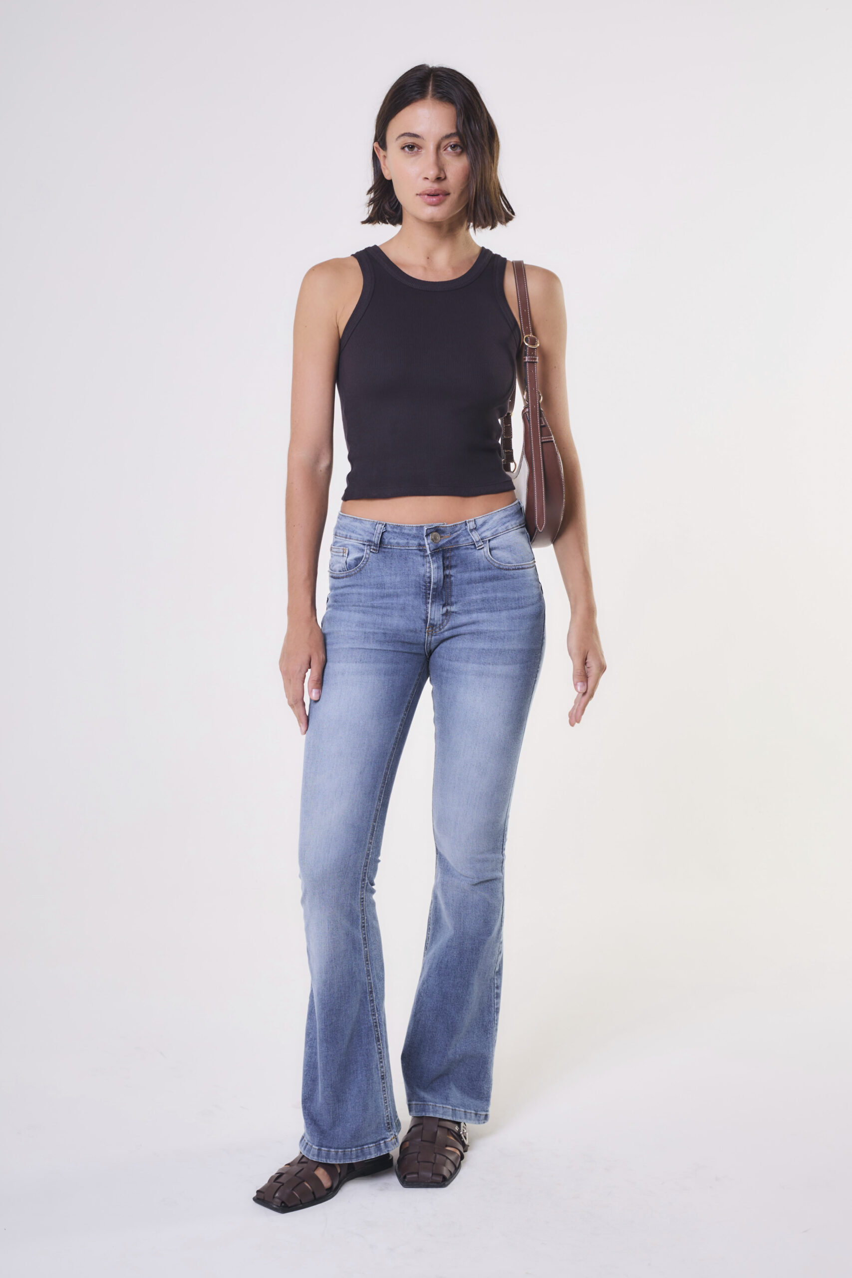 $ 36.000,00Pantalónde mujer oxford tiro alto bota con fleco.
