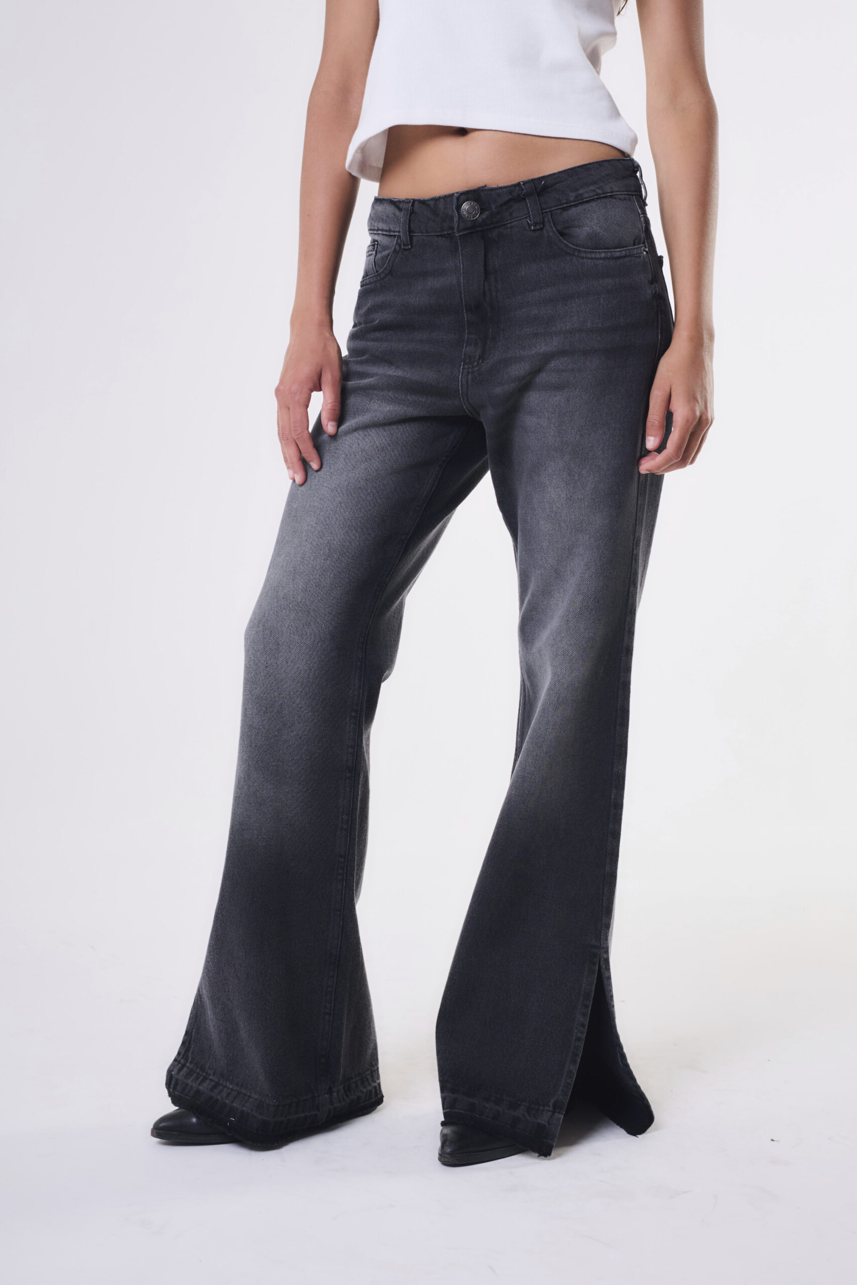 $ 30.000,00Pantalón de mujer tiro medio corford slim fit con tajos laterales.