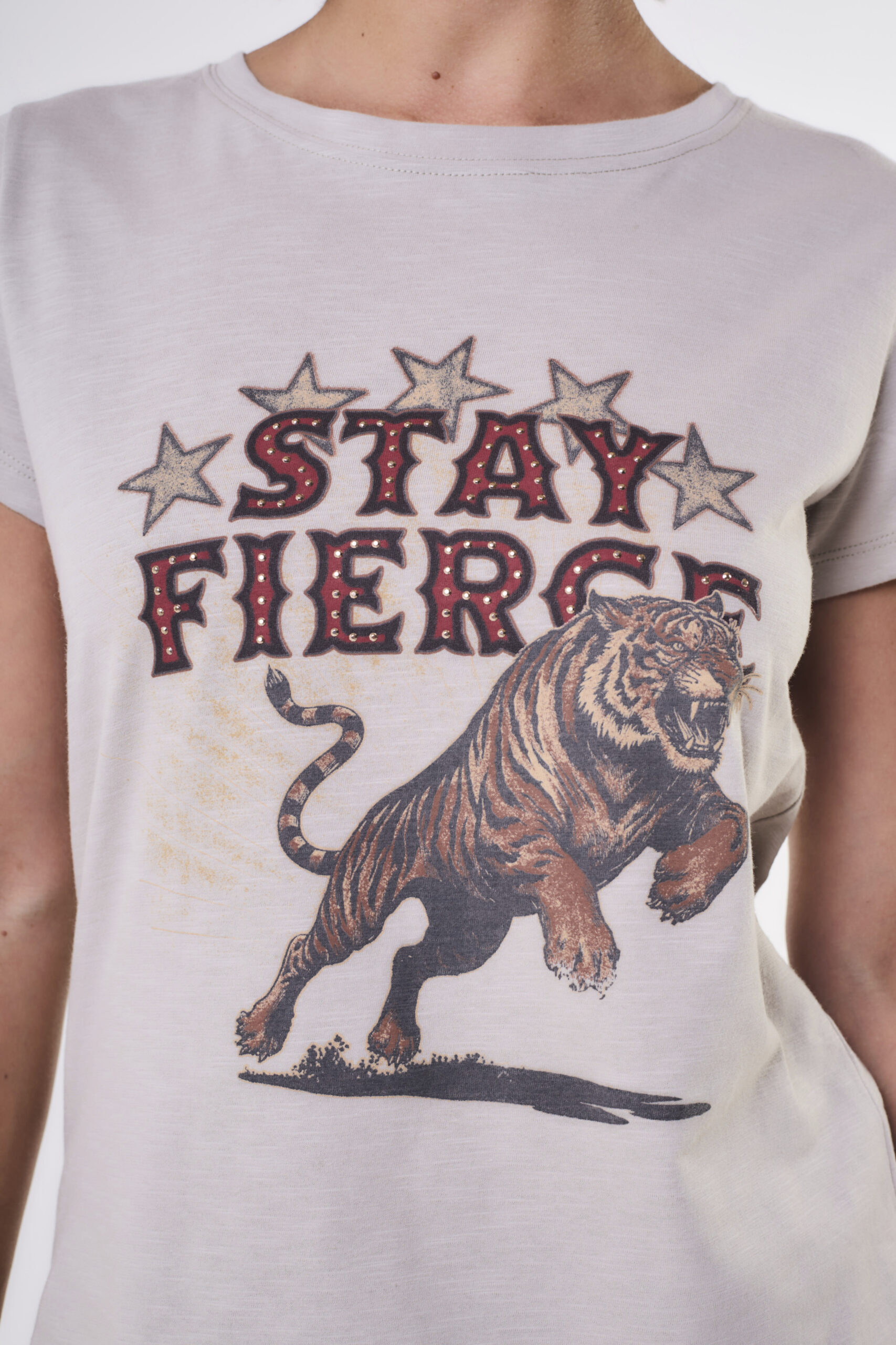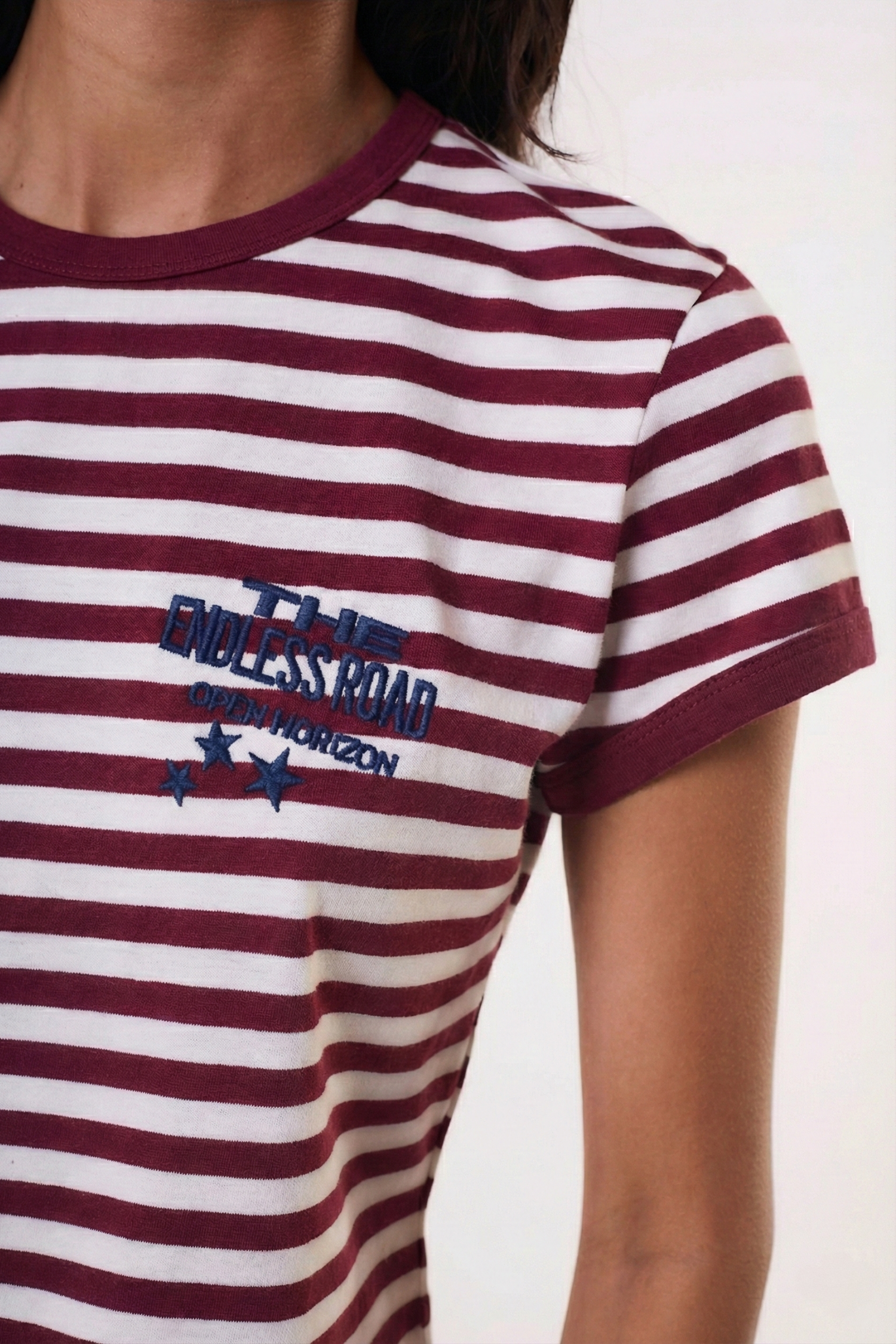 $ 8.500,00Remera estilo baby tee manga corta con cuello redondo.