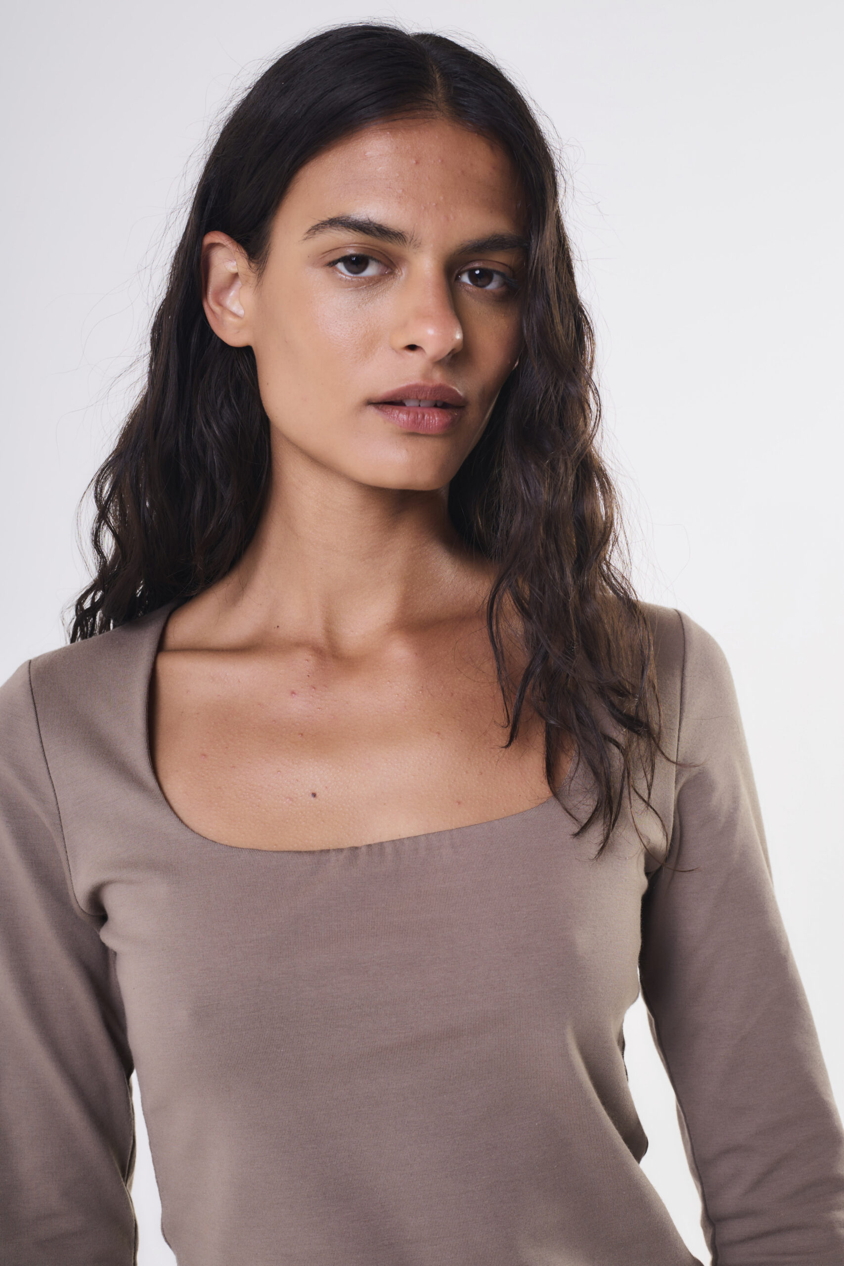 $ 12.000,00Remera de calce adherente de largo modular hasta primera cadera.