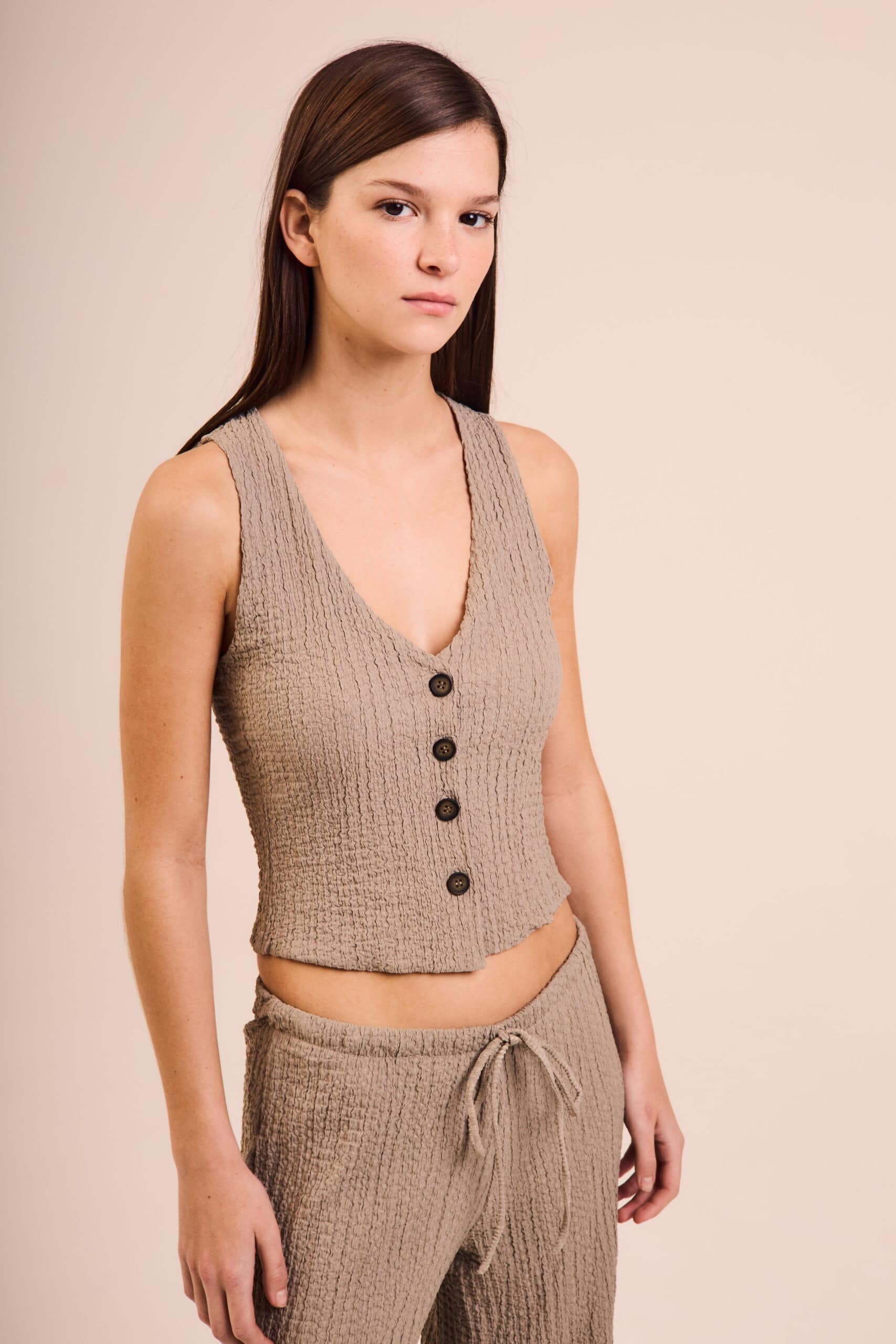 $ 16.000,00Chaleco con escote en V confeccionado en bambula de punto.