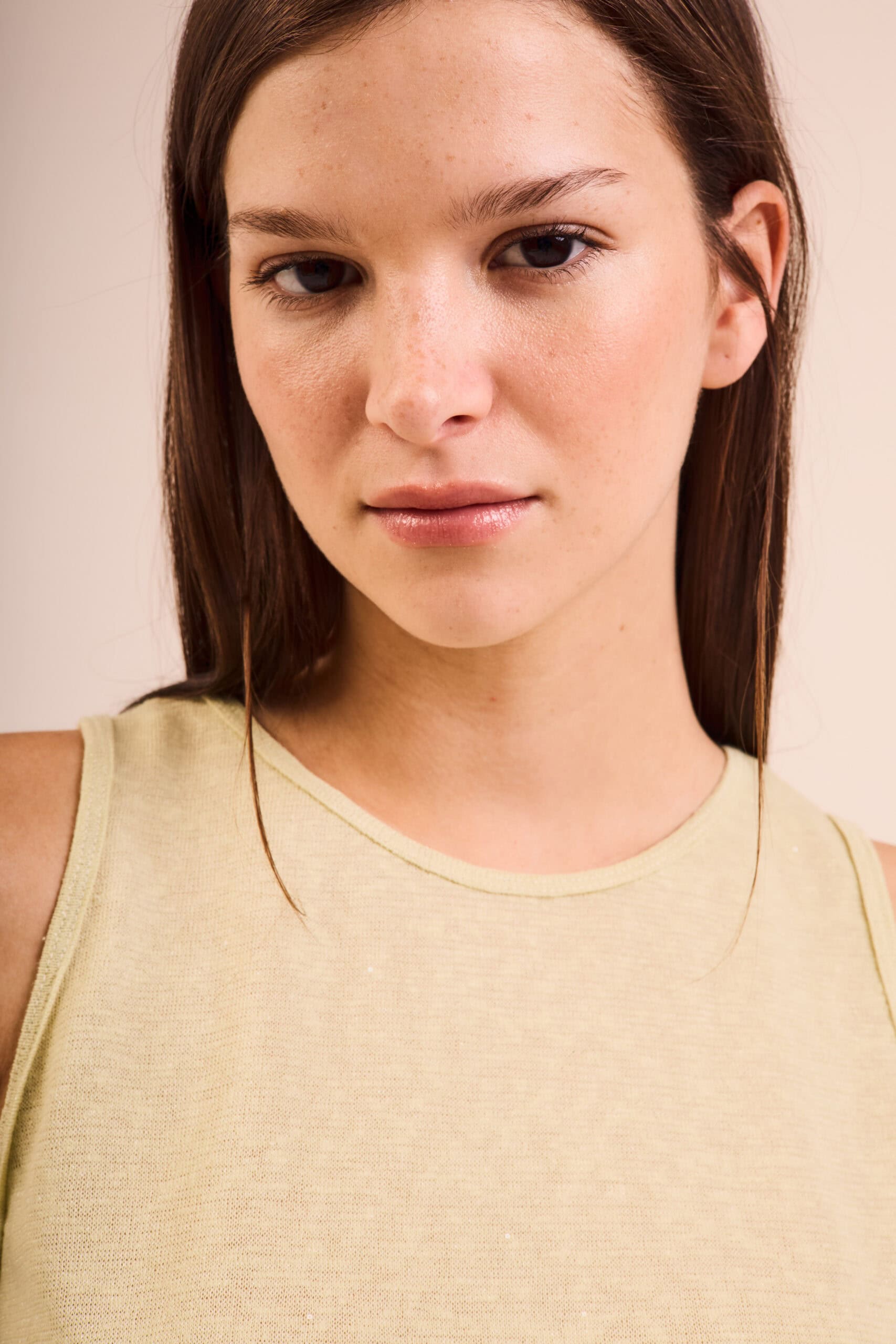 $ 10.000,00Musculosa de calce evasé con breteles finos y escote en U.