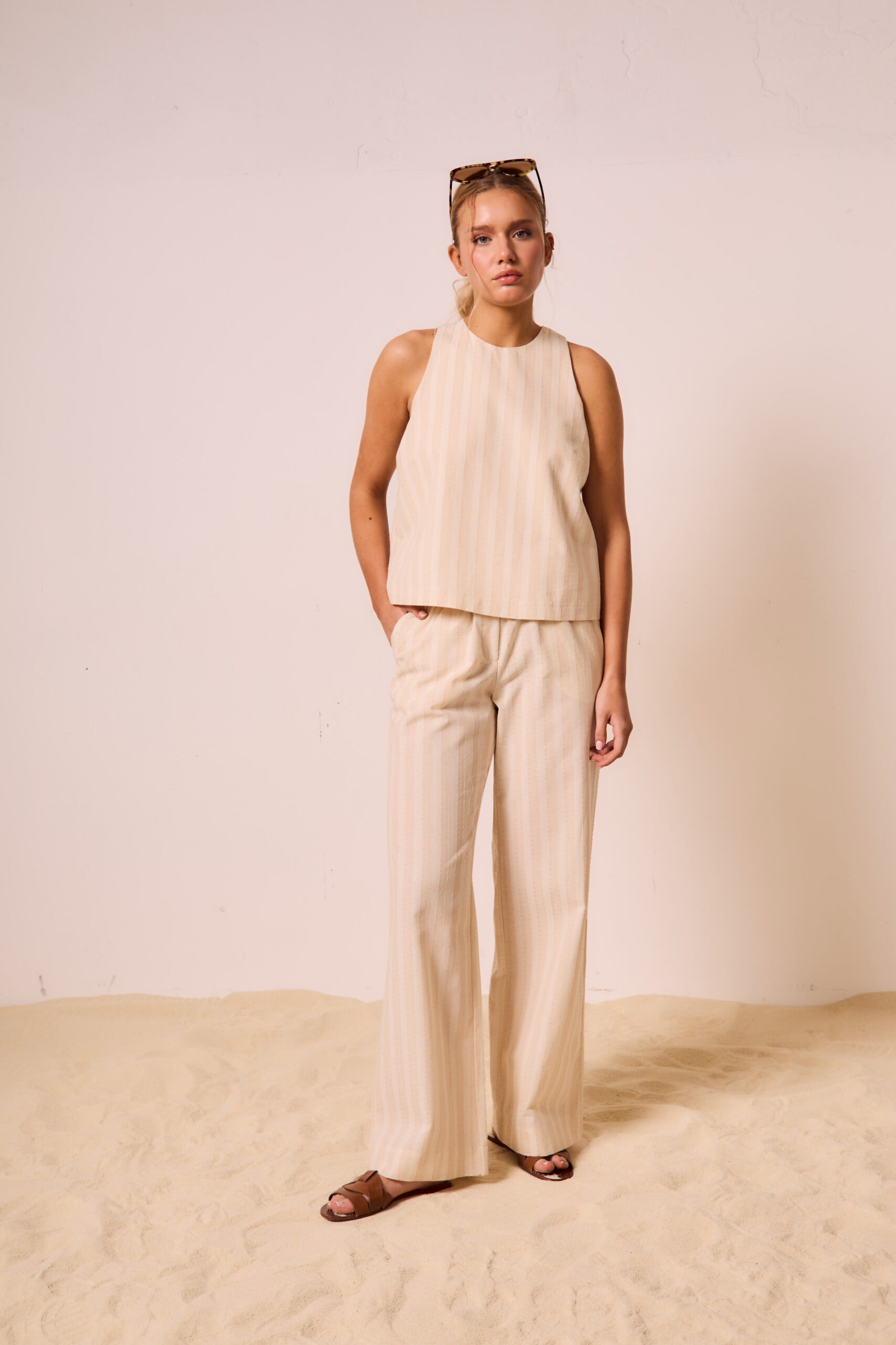 $ 17.000,00Musculosa de calce evasé, confeccionada en voile estampado con mini lunares foil.